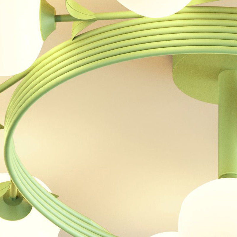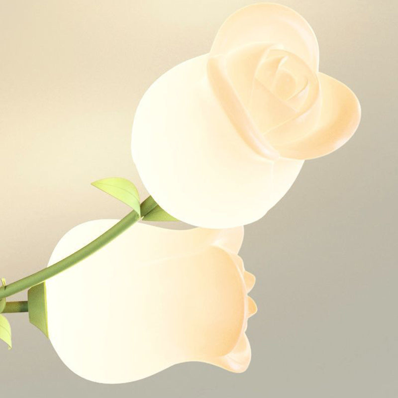 Contemporary Creative Branch Rose Flower Long Iron PE 4/5/6/10 Light Semi-Flush Mount Ceiling Light For Living Room
