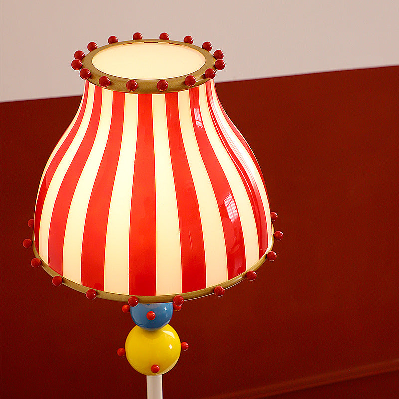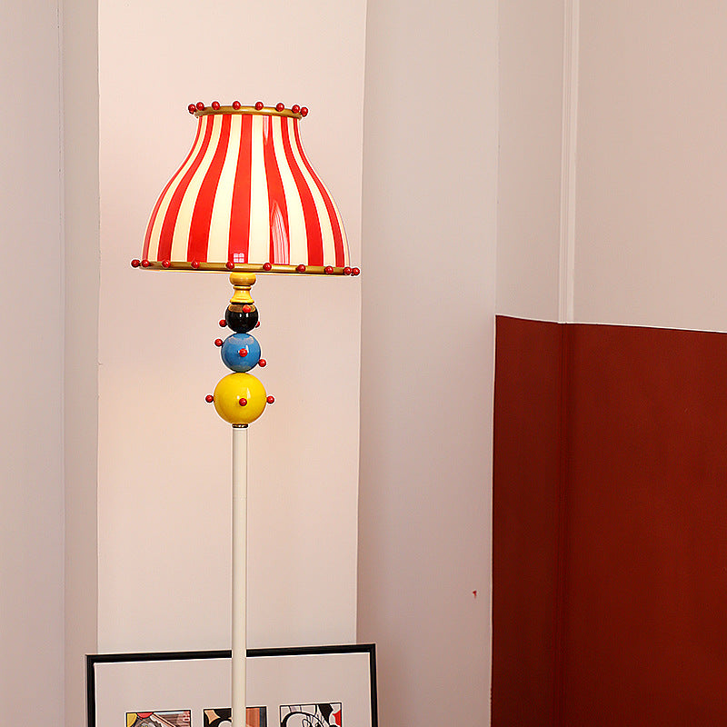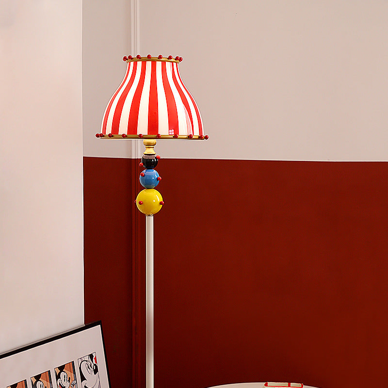 Contemporary Creative Circus Red & White Striped Glass Round Shade Iron 1-Light Standing Floor Lamp For Bedroom