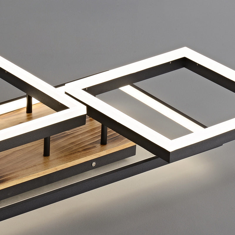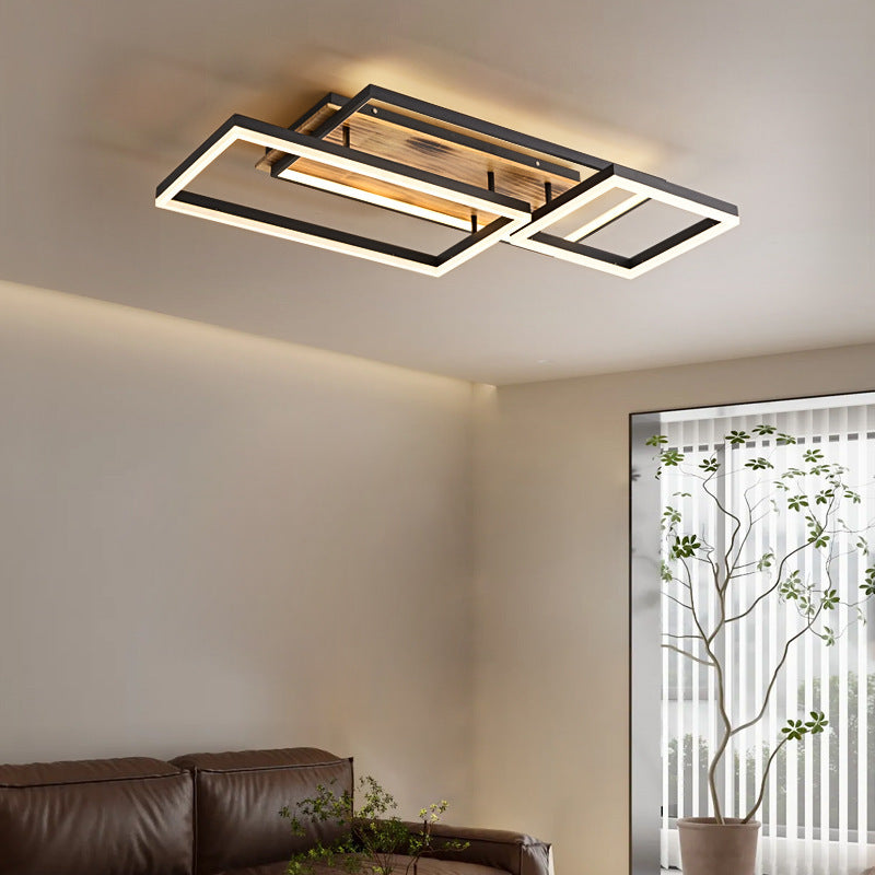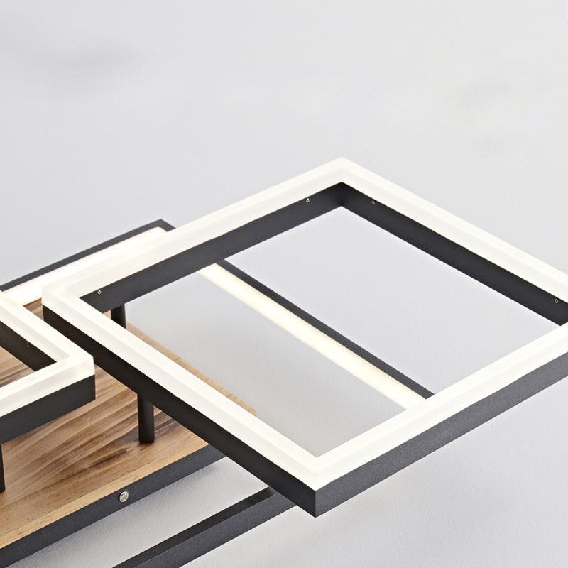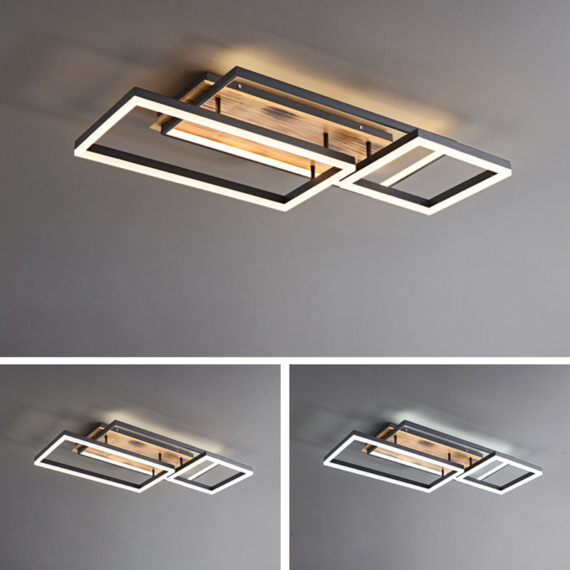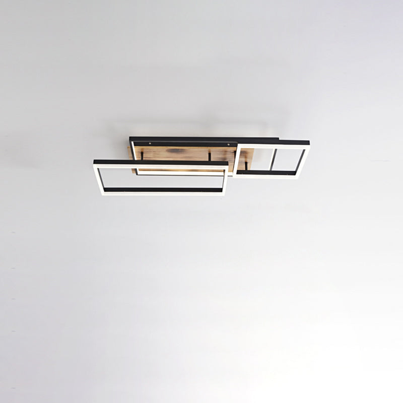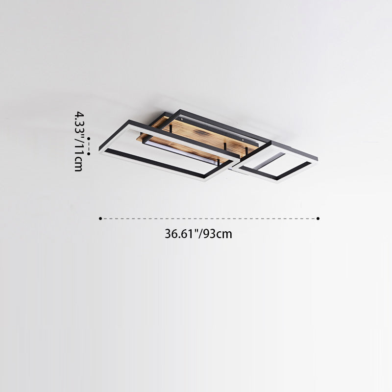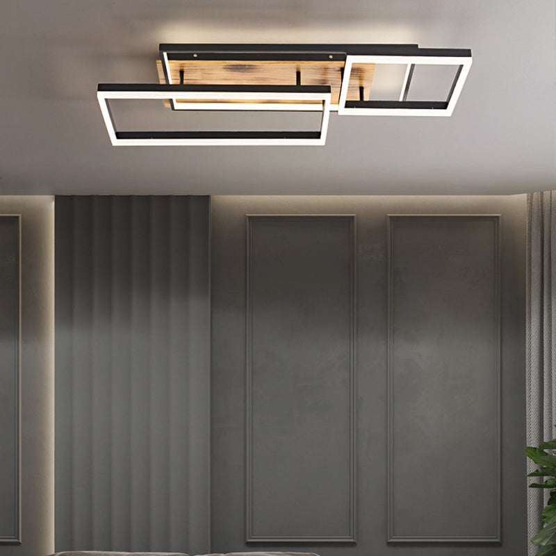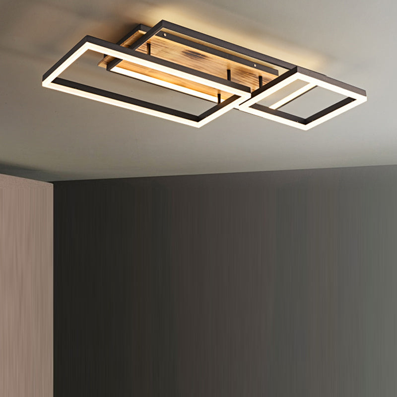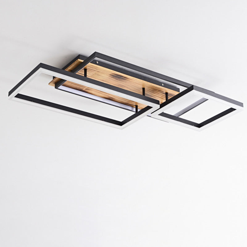 Contemporary Creative Combination Square Rectangular Wood Grain Aluminum Acrylic LED Semi-Flush Mount Ceiling Light For Living Room