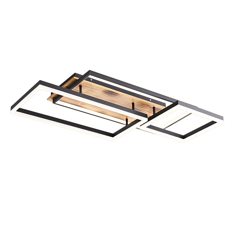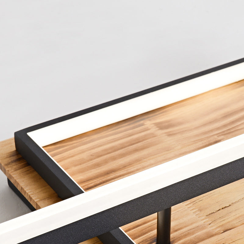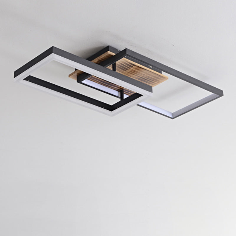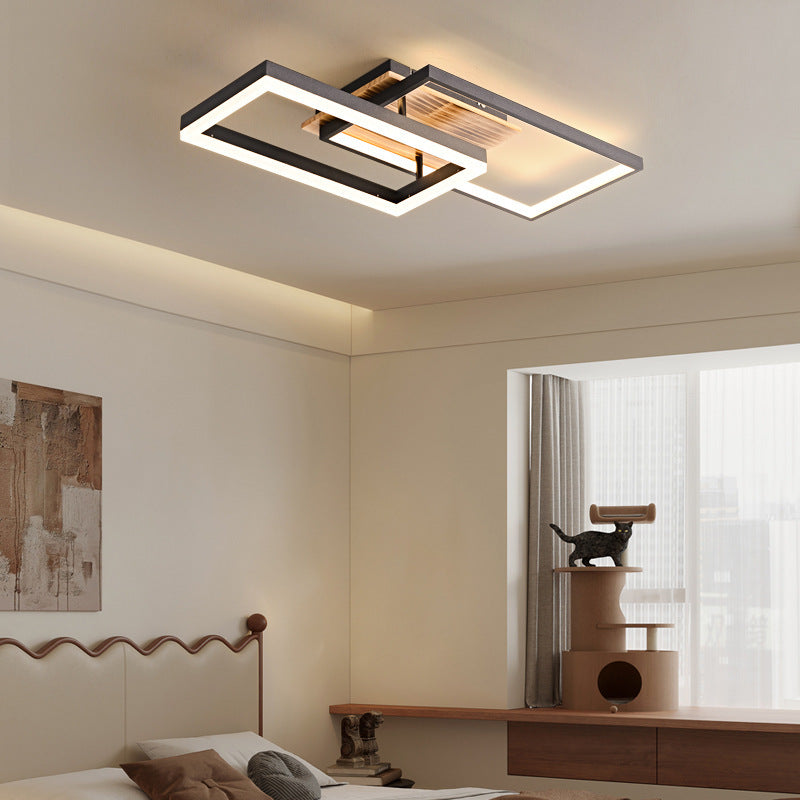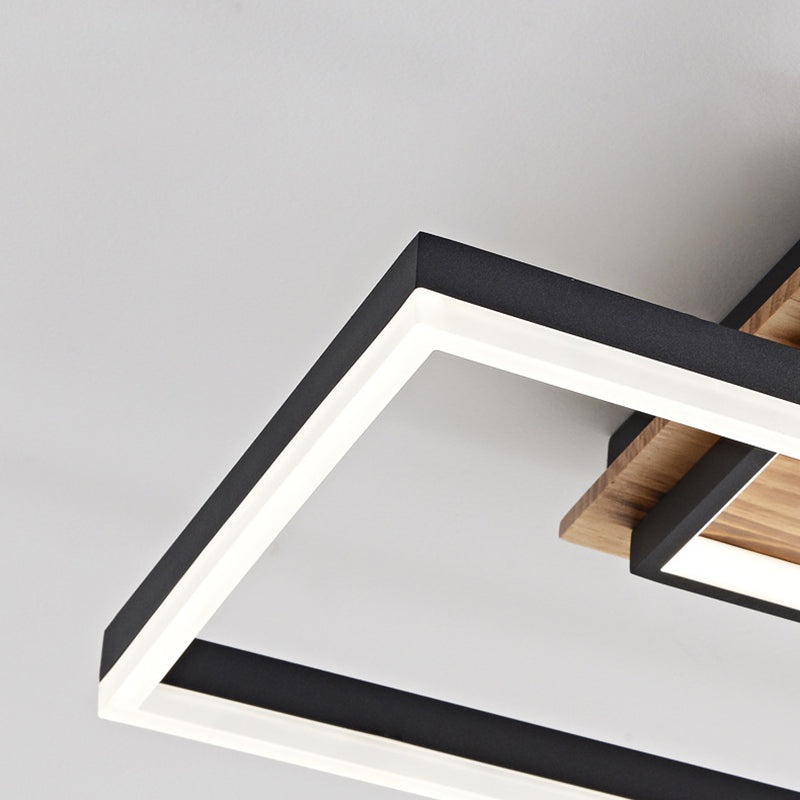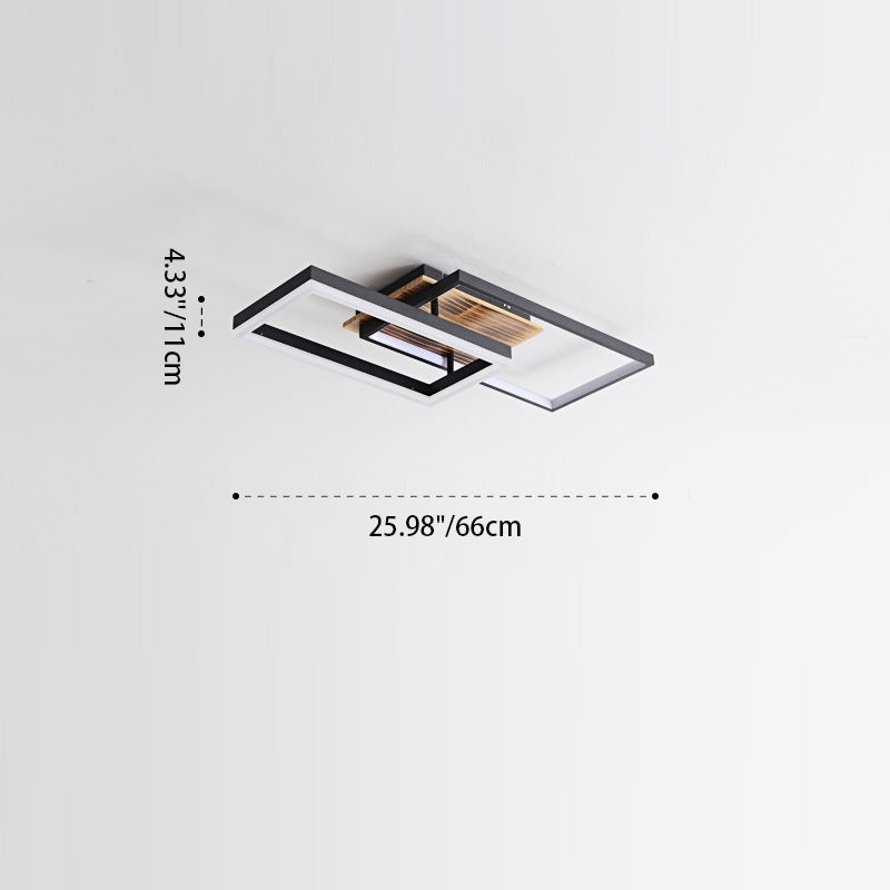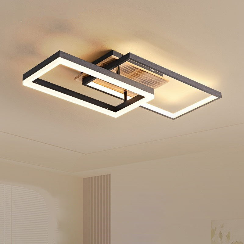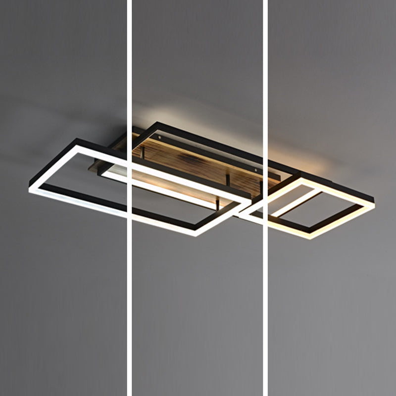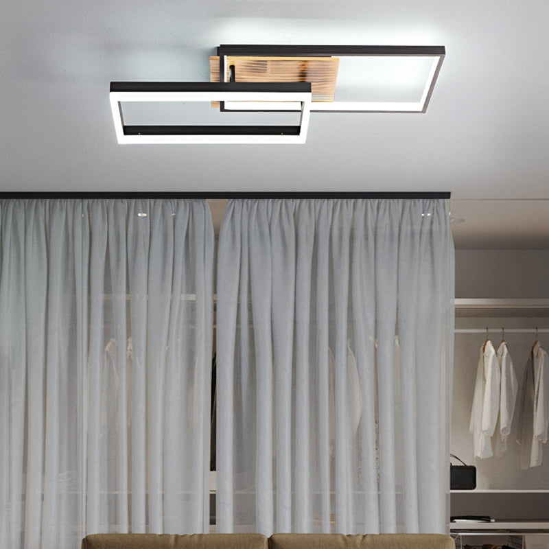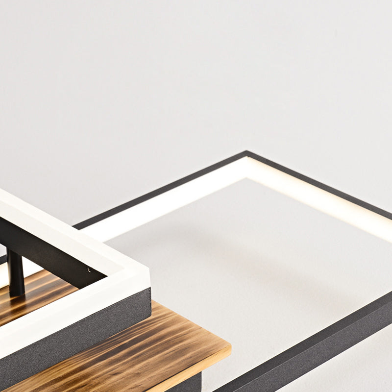 Contemporary Creative Combination Square Rectangular Wood Grain Aluminum Acrylic LED Semi-Flush Mount Ceiling Light For Living Room