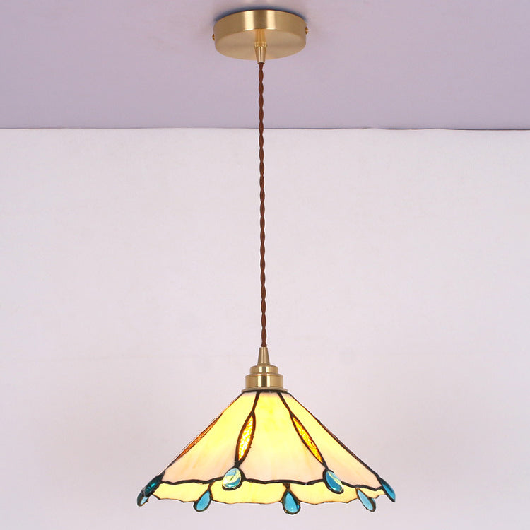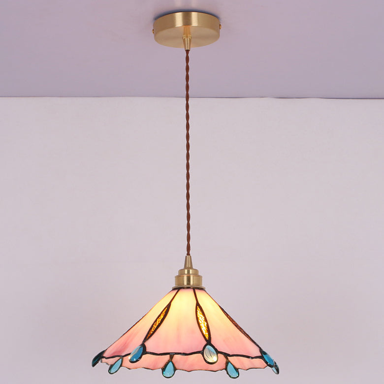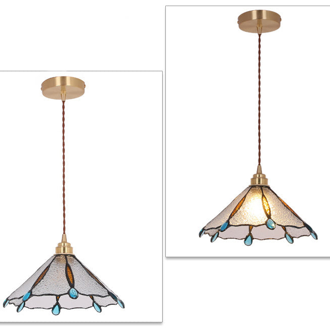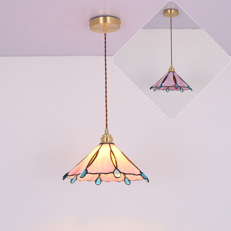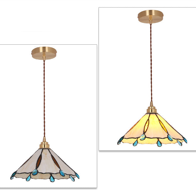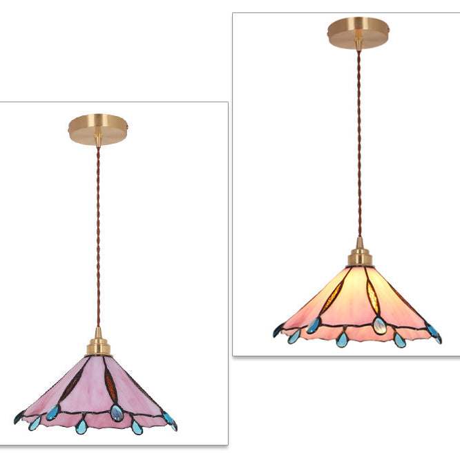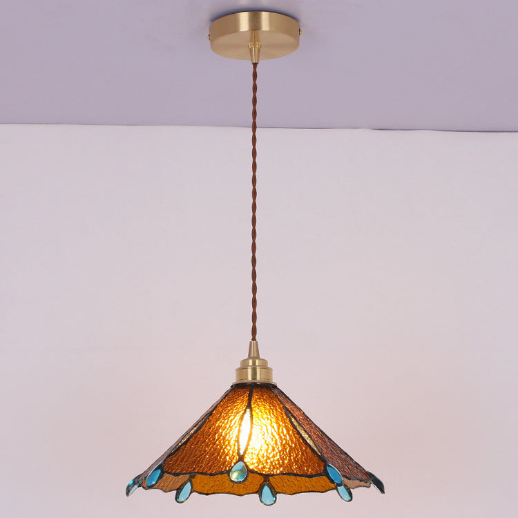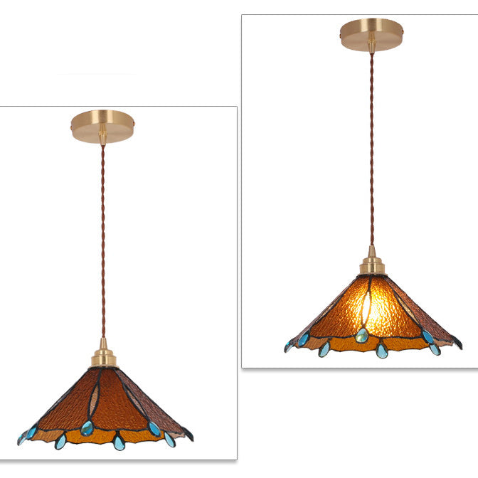 Contemporary Creative Conical Round Umbrella Glass Brass 1-Light Pendant Light For Living Room