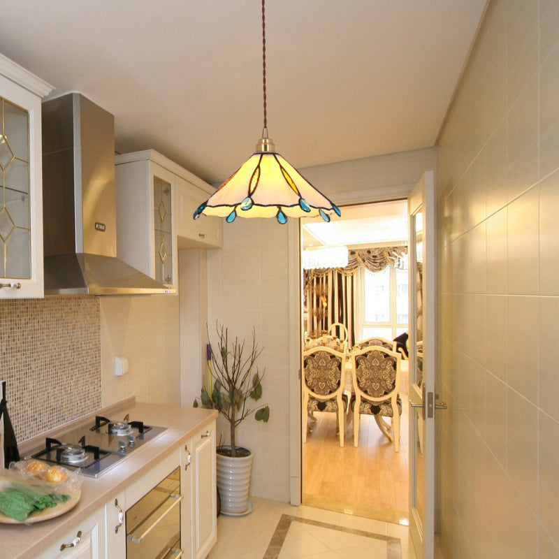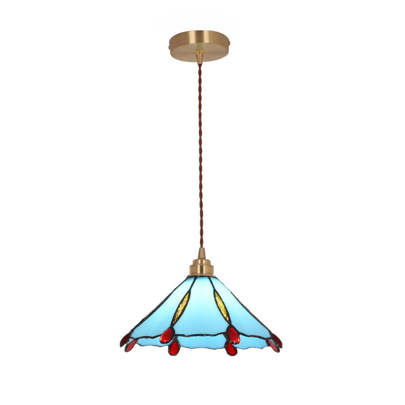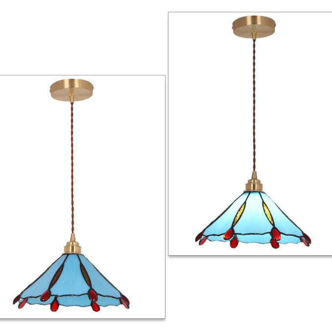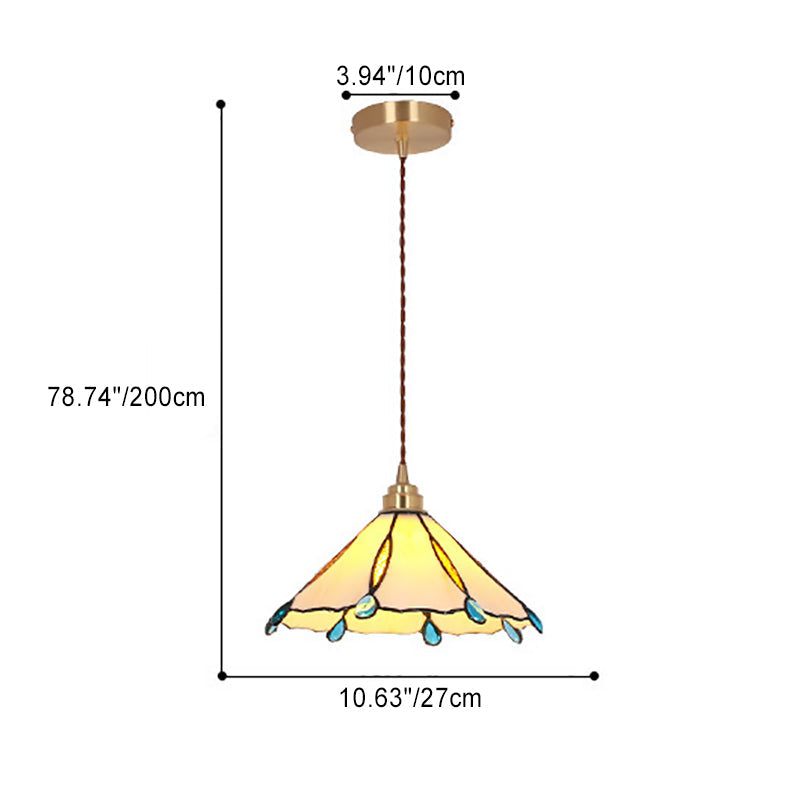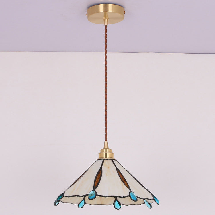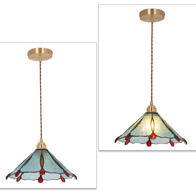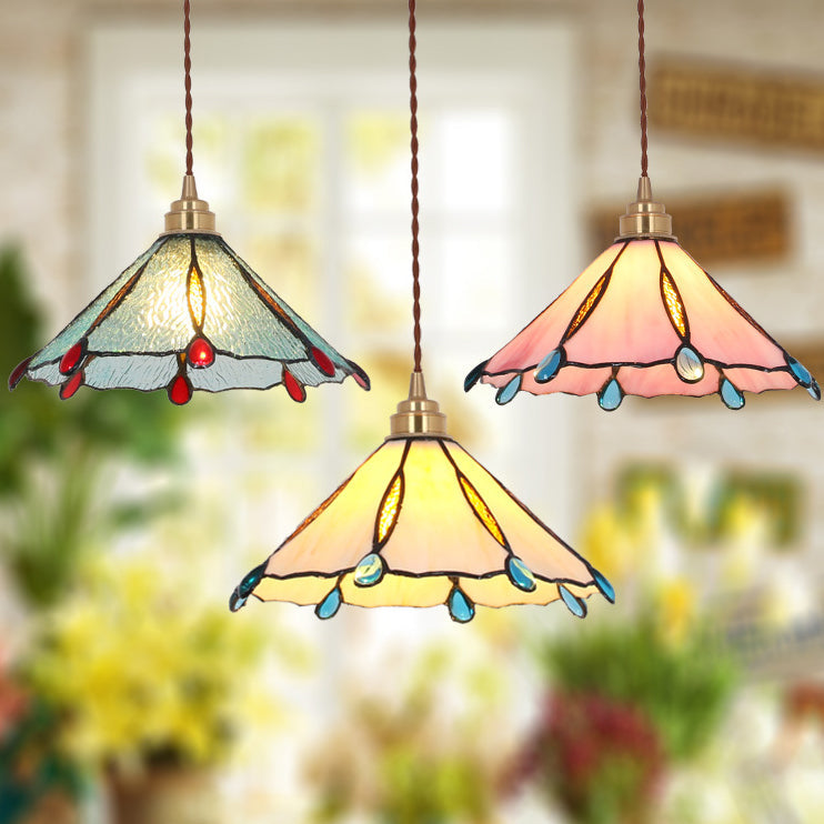 Contemporary Creative Conical Round Umbrella Glass Brass 1-Light Pendant Light For Living Room