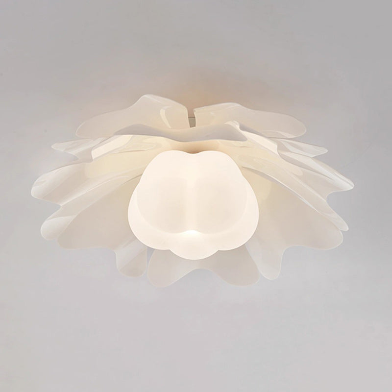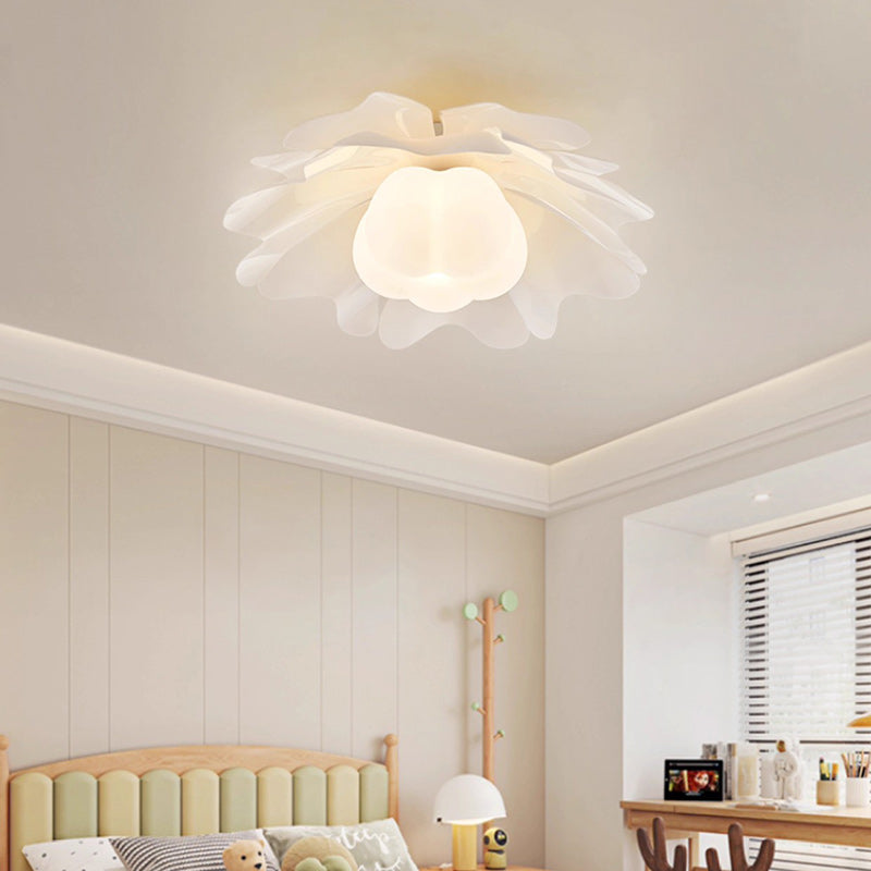 Contemporary Creative Flower Pumpkin Shape Hardware Frame Acrylic Shade 1-Light Flush Mount Ceiling Light For Living Room