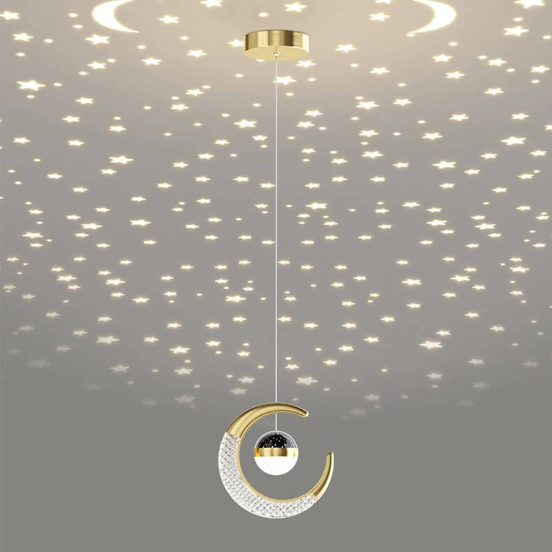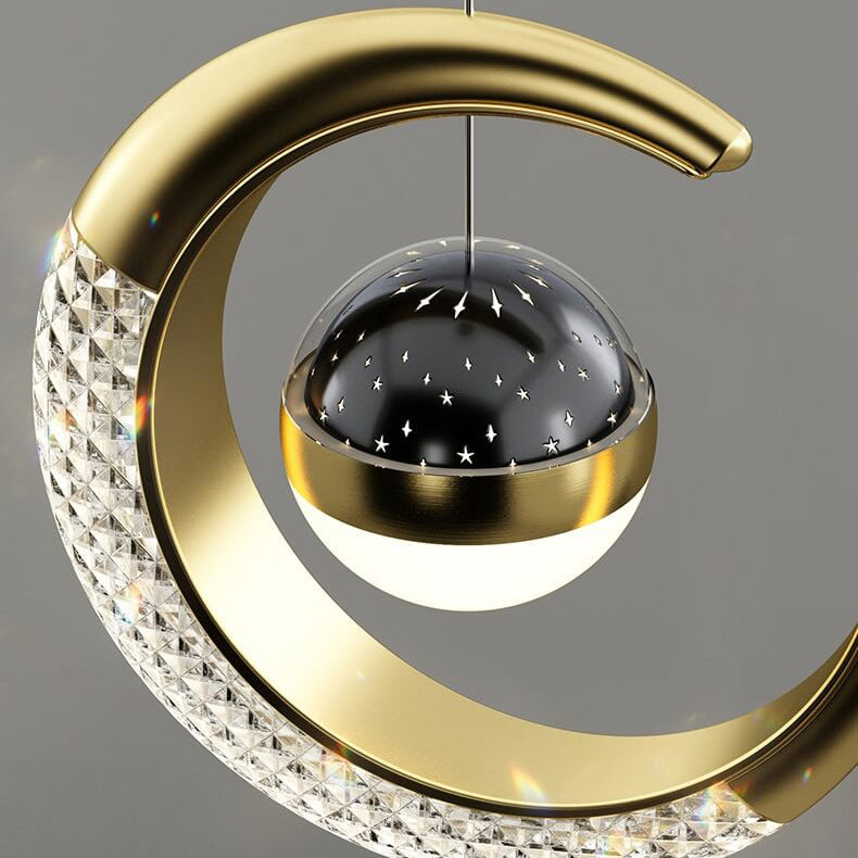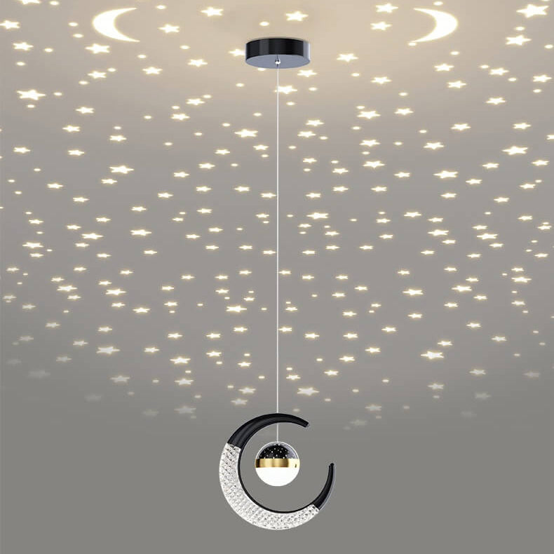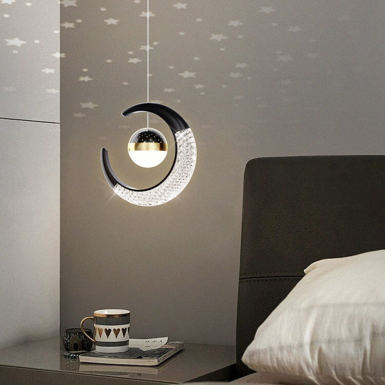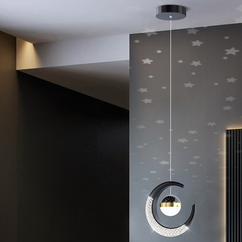 Contemporary Creative Iron Acrylic Moon LED Pendant Light For Bedroom