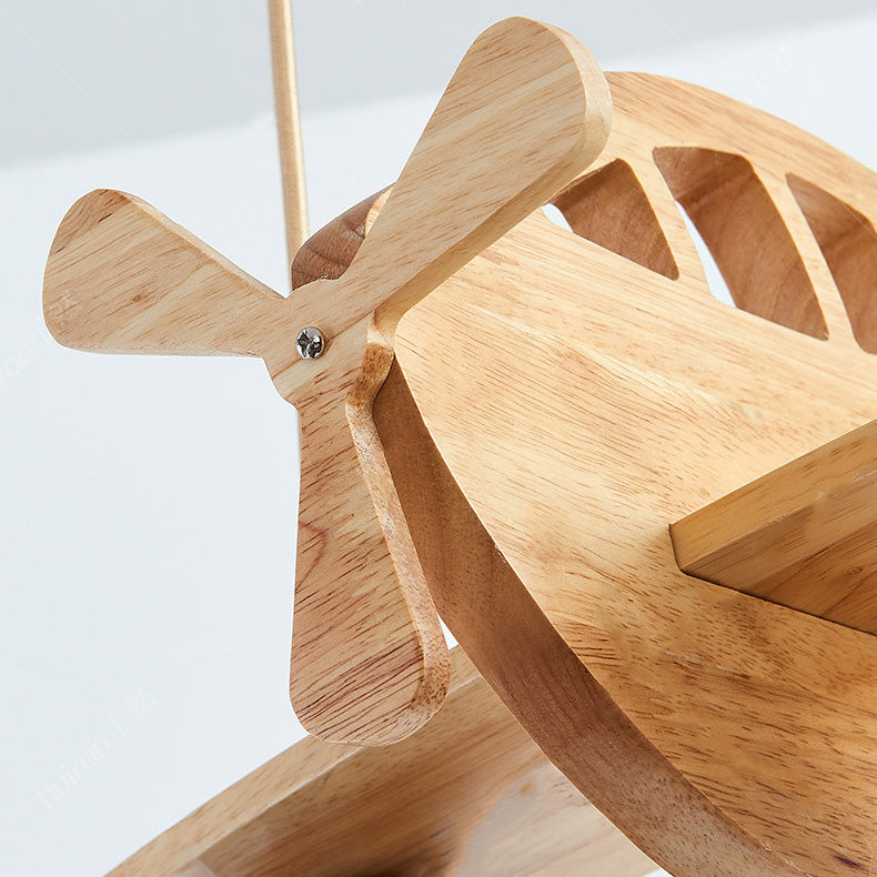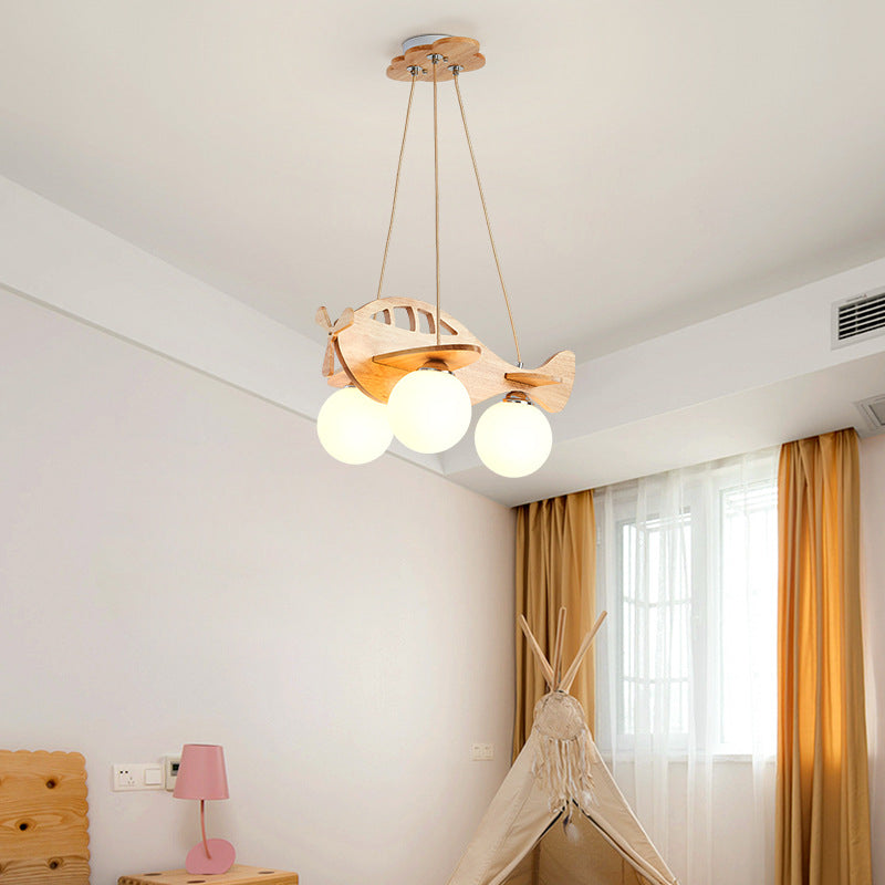 Contemporary Creative Kids Cartoon Airplane Orb Wood Iron Glass 3-Light Chandelier For Bedroom