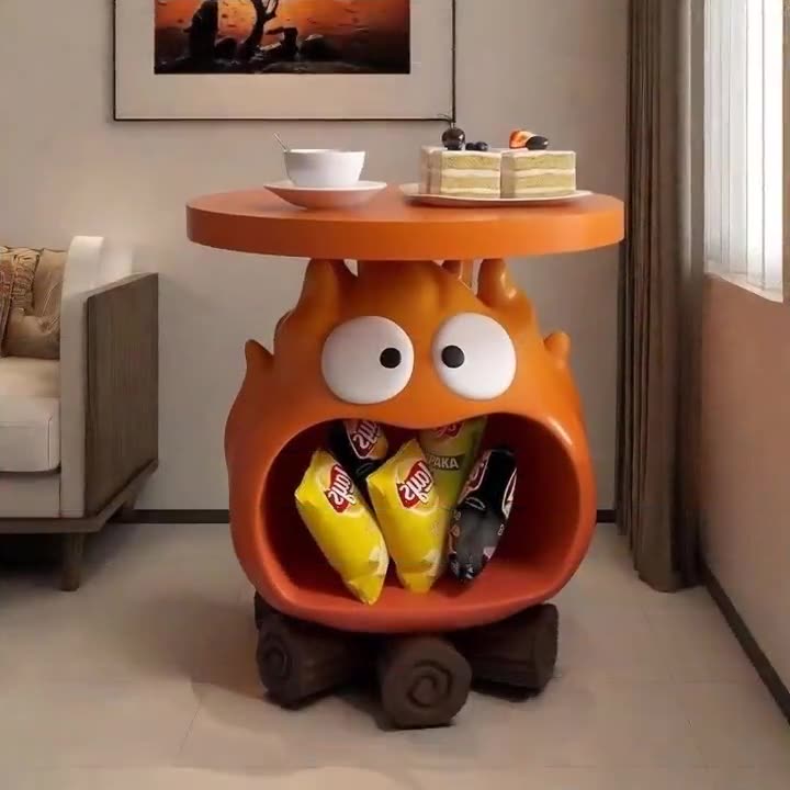 Contemporary Creative Kids Flame-Shaped Resin Side Table 1-Tray For Living Room