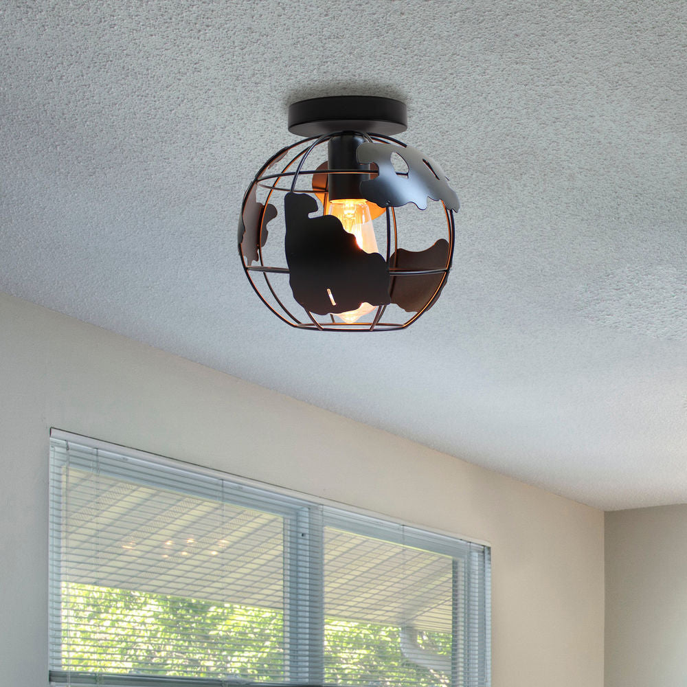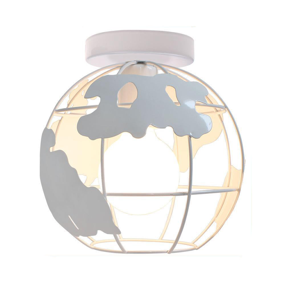 Contemporary Creative Kids Globe Map Shape Iron 1-Light Semi-Flush Mount Ceiling Light Kids Light For Bedroom
