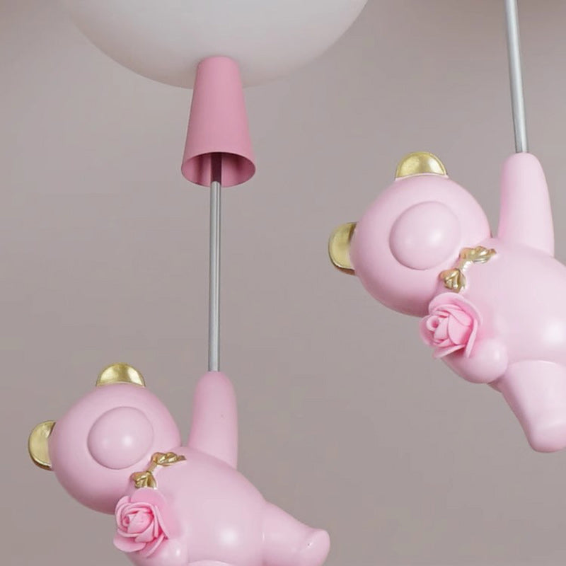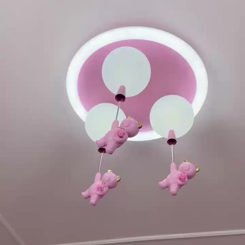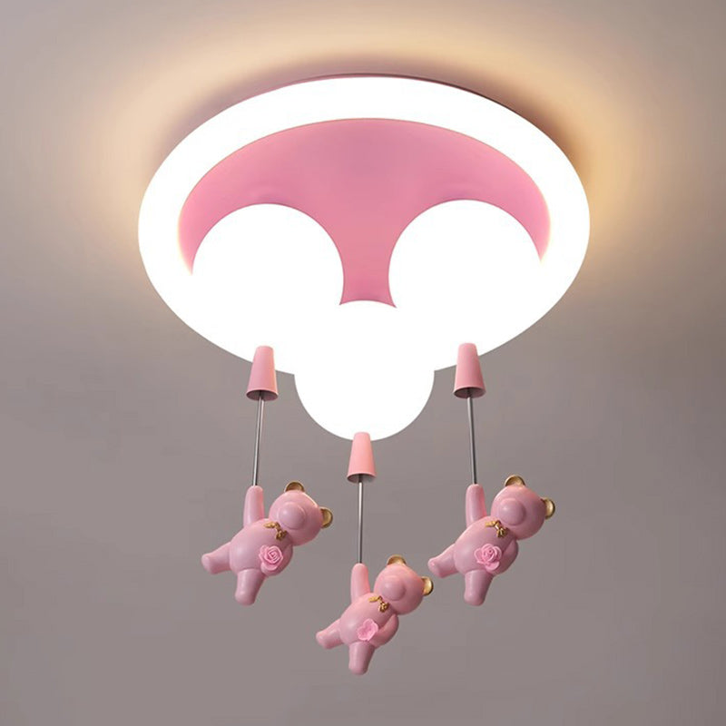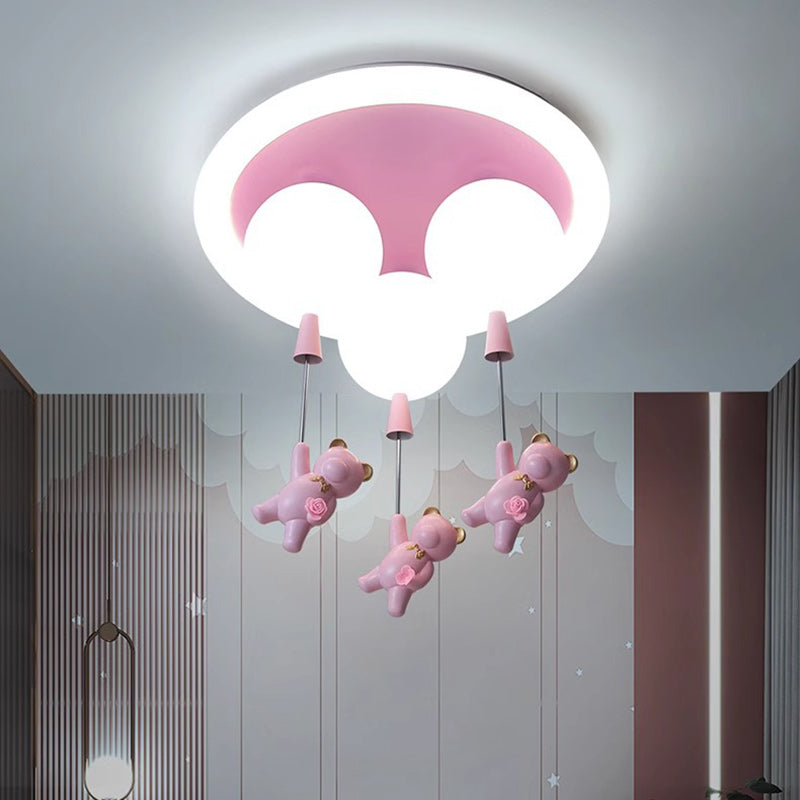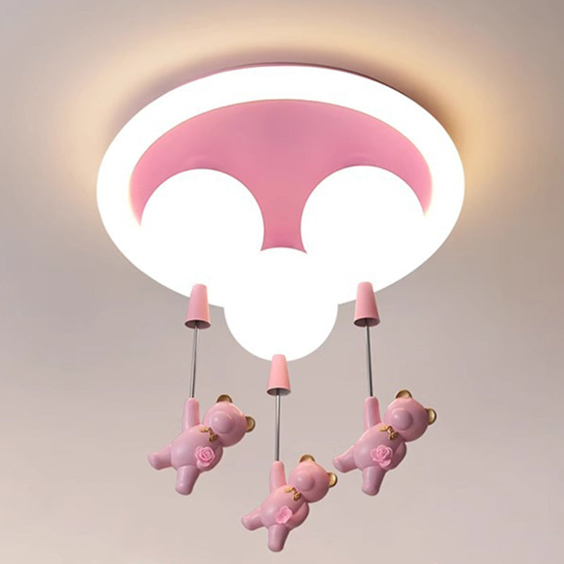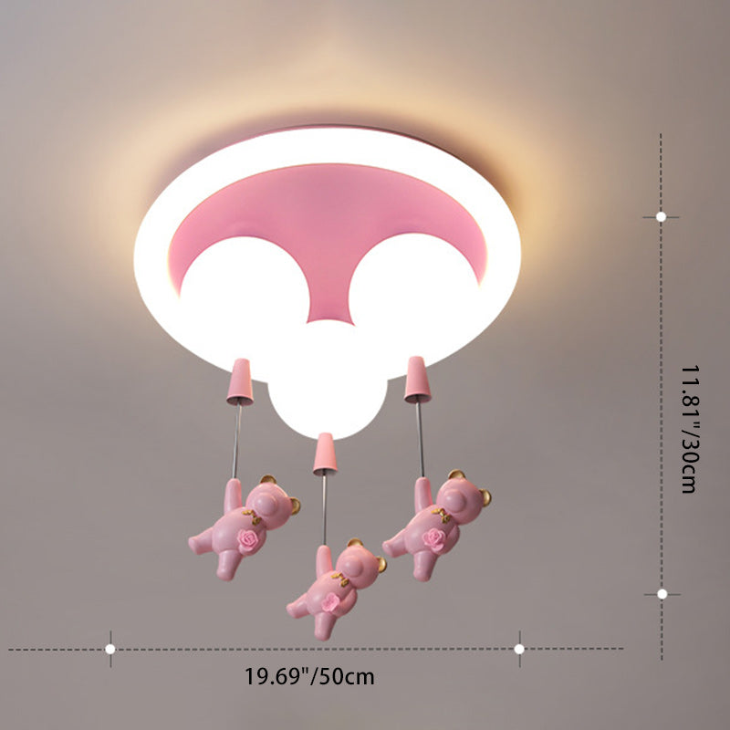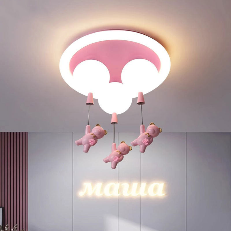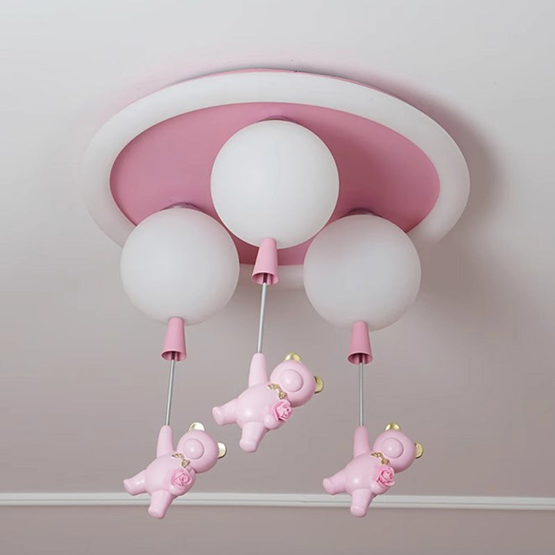 Contemporary Creative Kids Round Orb Bear Iron Resin Plastic LED Flush Mount Ceiling Light For Bedroom