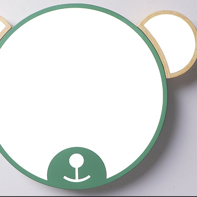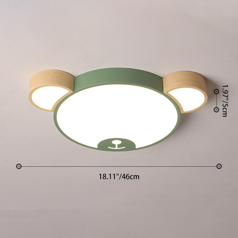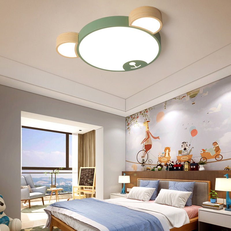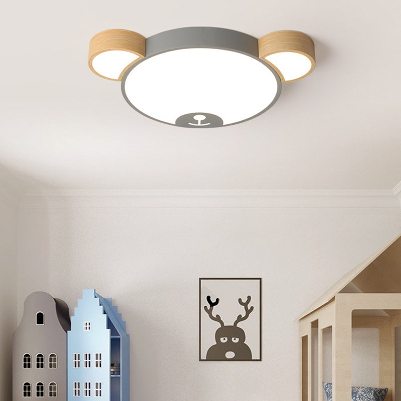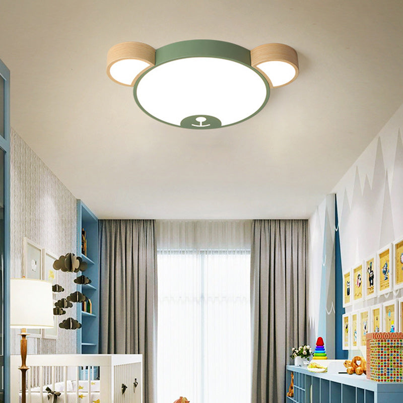 Contemporary Creative Macaron Kids Bear Round Iron Acrylic LED Flush Mount Ceiling Light For Bedroom