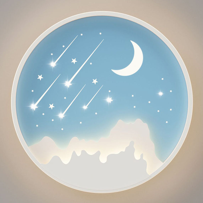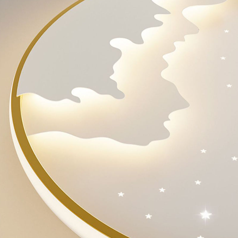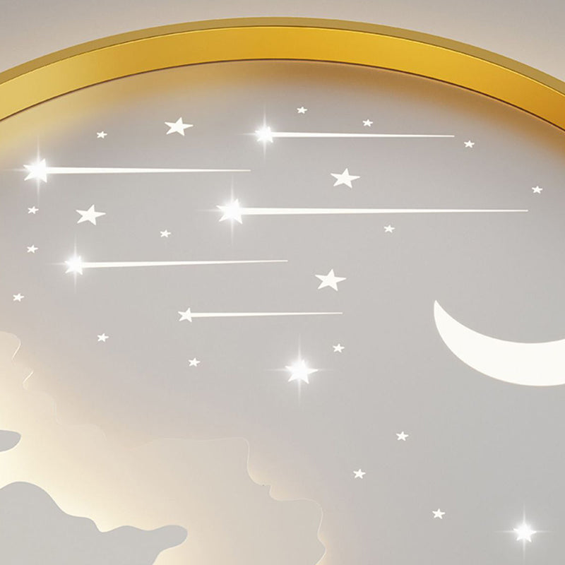 Contemporary Creative Moon Meteor Iron Acrylic Round LED Flush Mount Ceiling Light For Bedroom