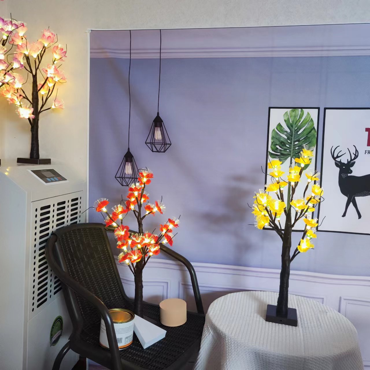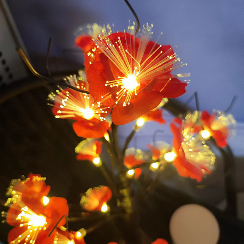 Contemporary Creative Plastic Fabric Artificial Rose Flower Tree LED Table Lamp For Bedroom