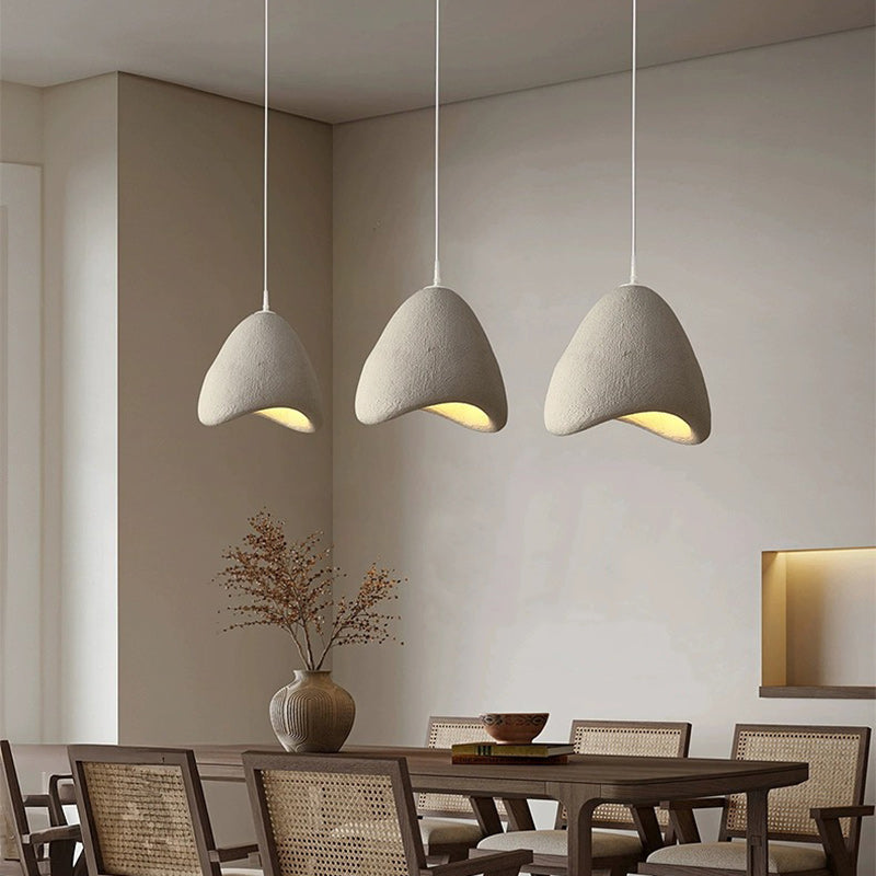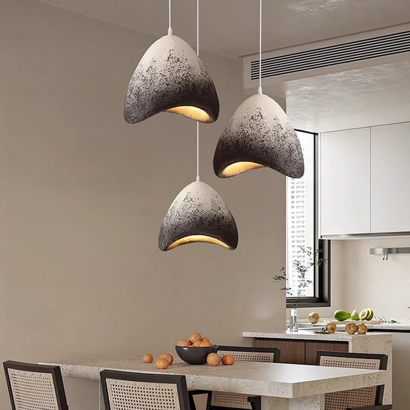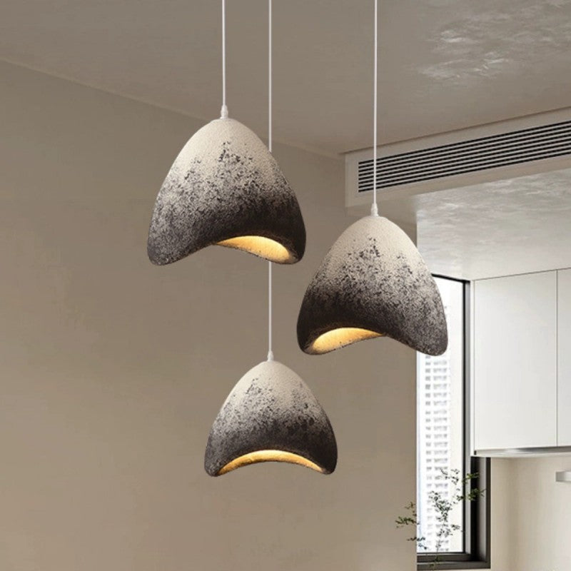 This handcrafted cone-shaped pendant light, made from high-density polystyrene, features a unique textured finish in white, gray, or ink-black tones. Ideal for dining rooms, bedrooms, or living areas, it offers artisan charm with a 1-light design and sculptural appeal.