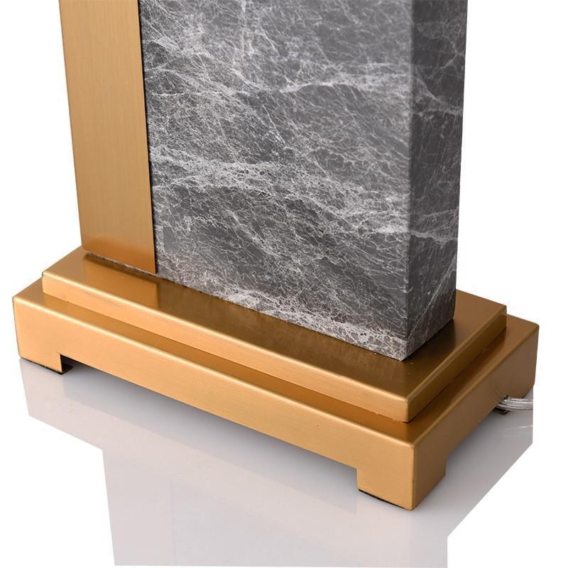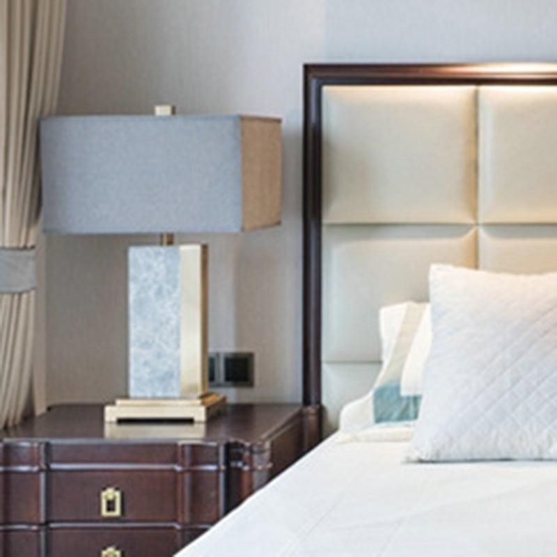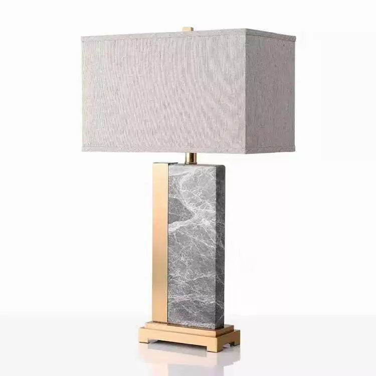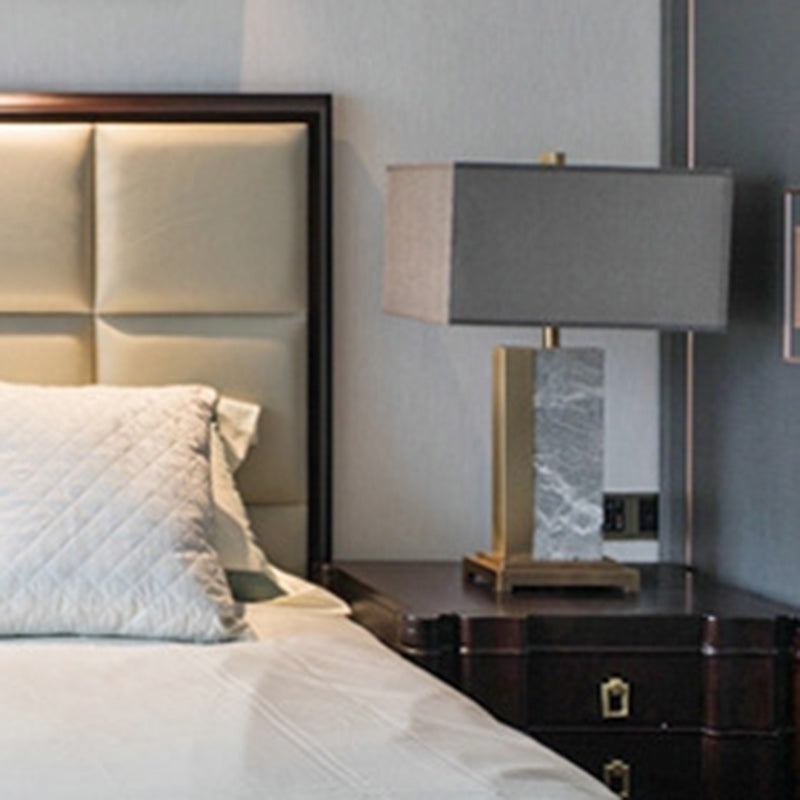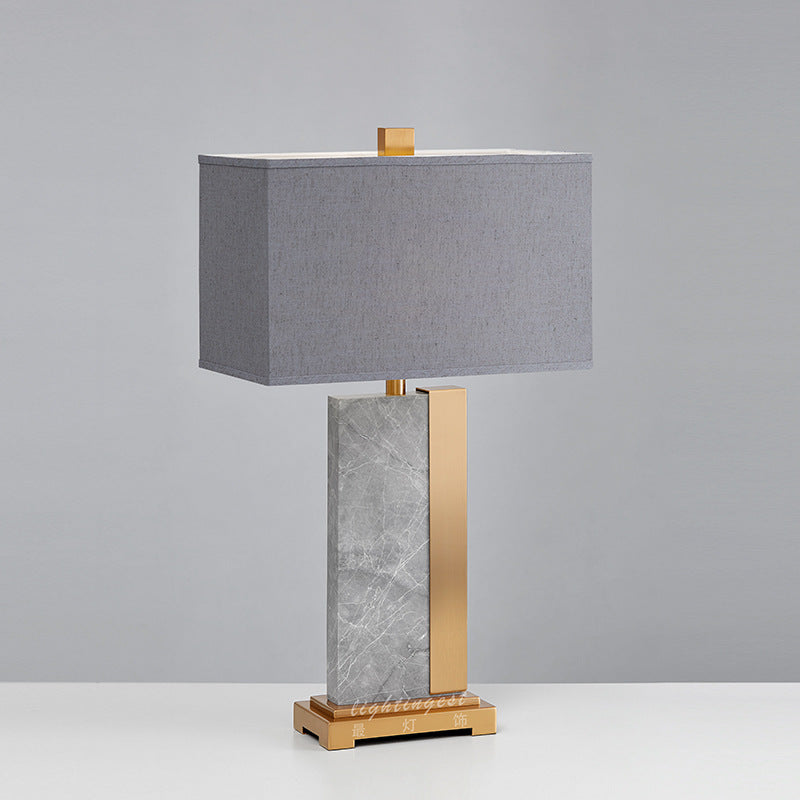 Contemporary Creative Rectangle Fabric Marble Metal 1-Light Table Lamp For Living Room