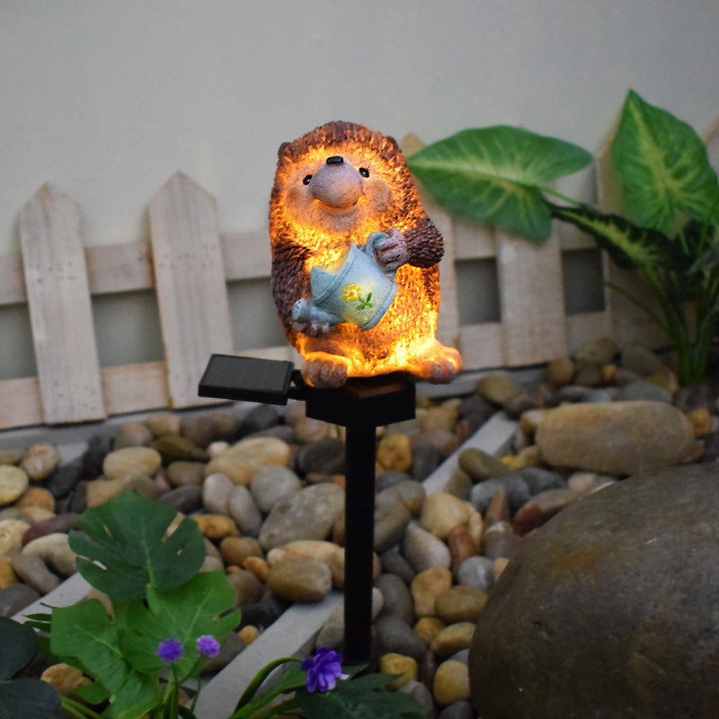 Contemporary Creative Resin Kettle Hedgehog Waterproof LED Solar Lawn Insert Light For Outdoor Patio