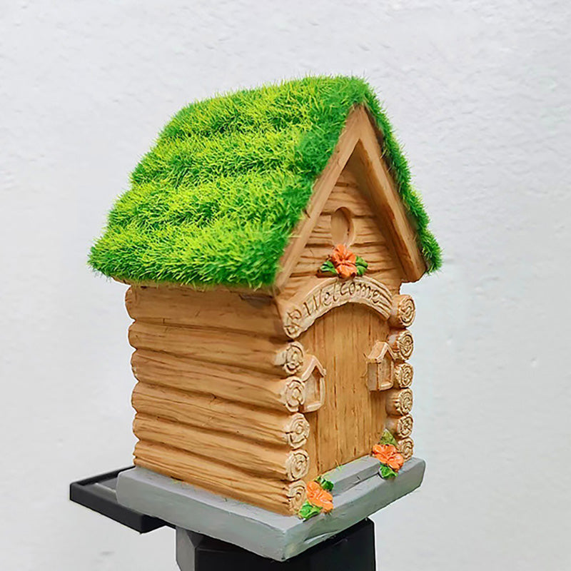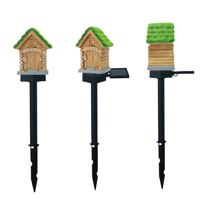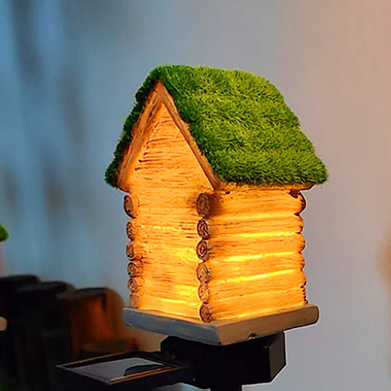 Contemporary Creative Resin Wooden House LED Solar Waterproof Lawn Insert Light For Outdoor Patio