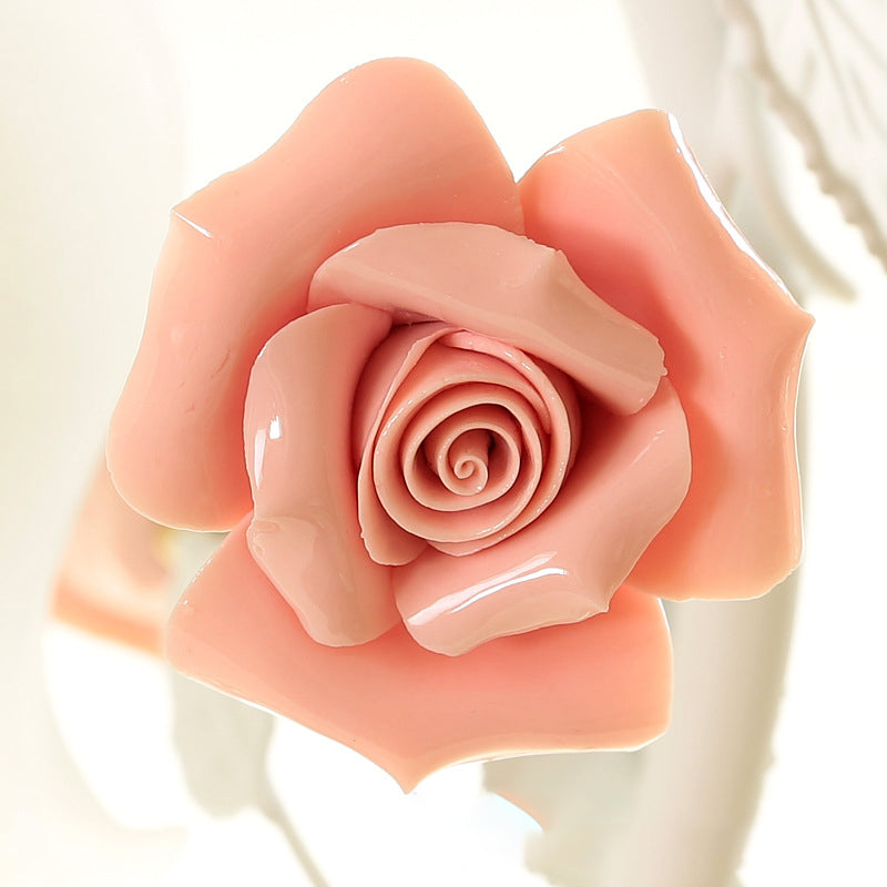Contemporary Creative Rose Ceramic Iron Glass 1-Light Table Lamp For Bedroom