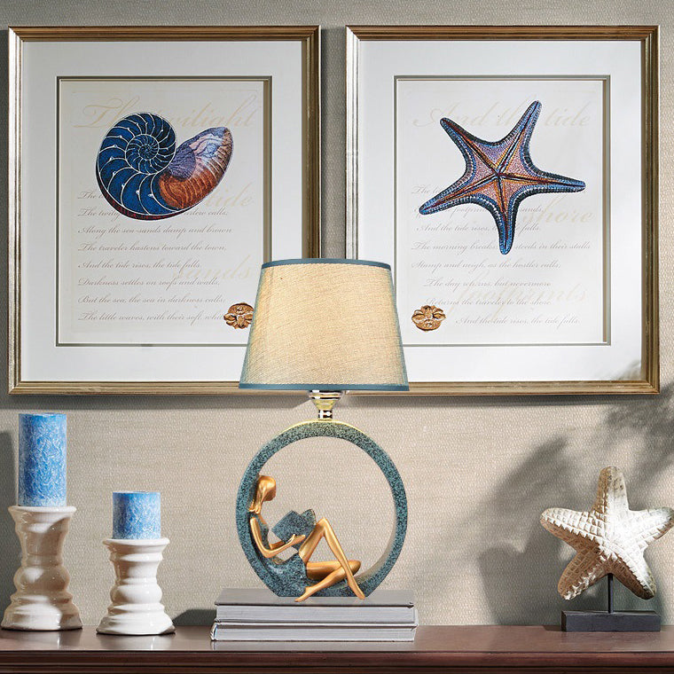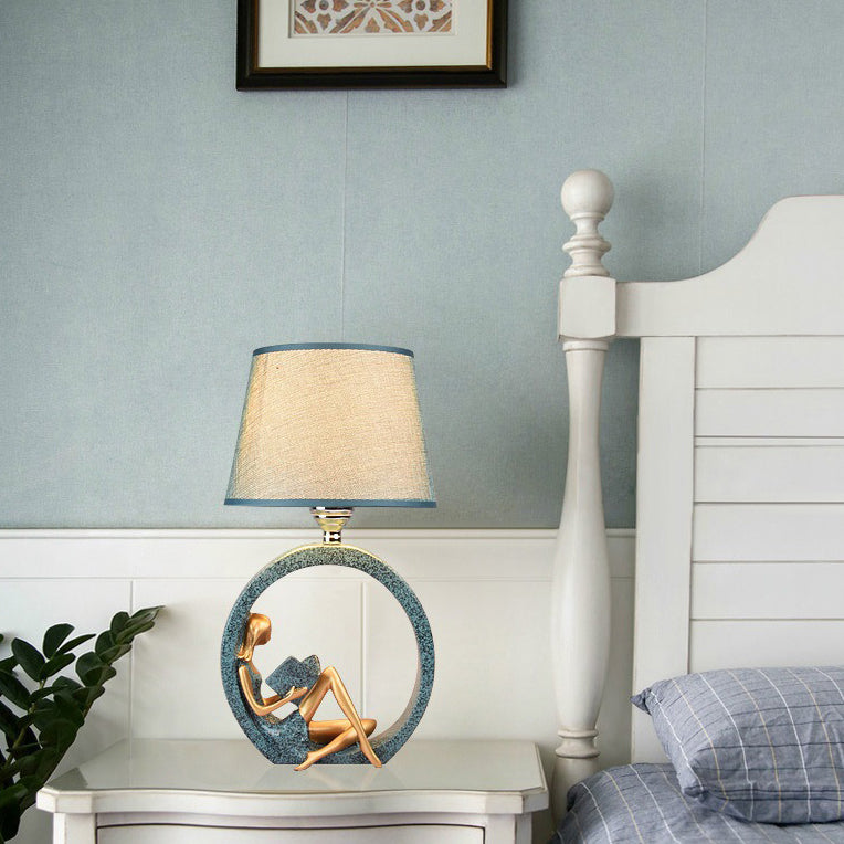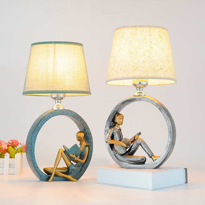 Contemporary Creative Round Girl Boy Resin Fabric 1-Light Table Lamp For Living Room