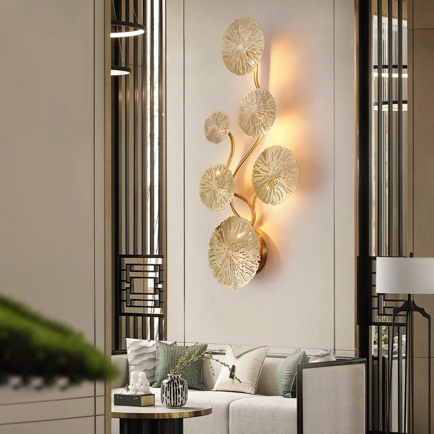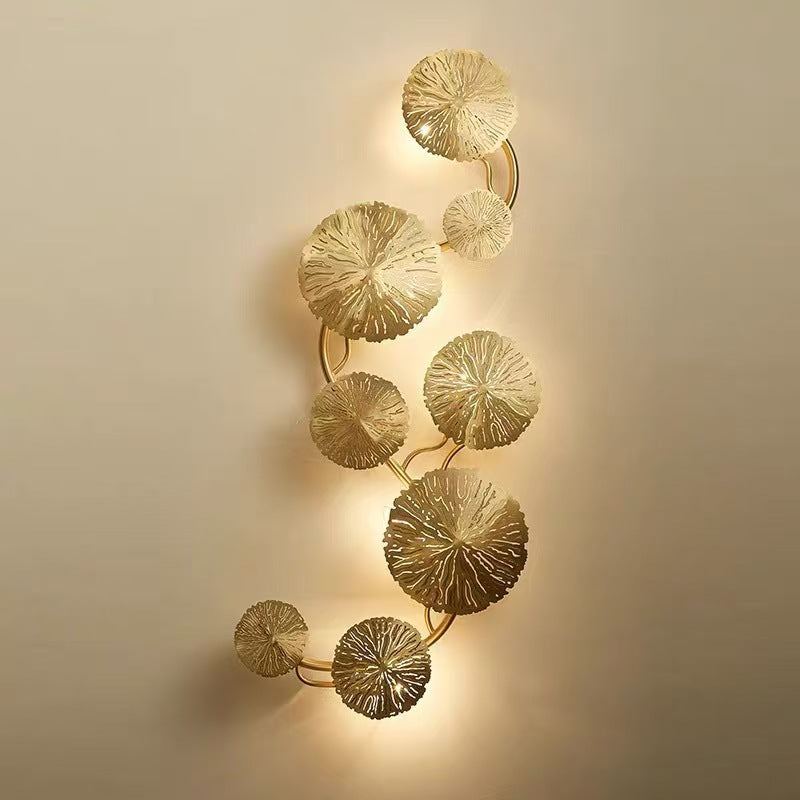 Contemporary Creative Round Lotus Leaf Stainless Steel 4/5/6/8 Light Wall Sconce Lamp For Living Room