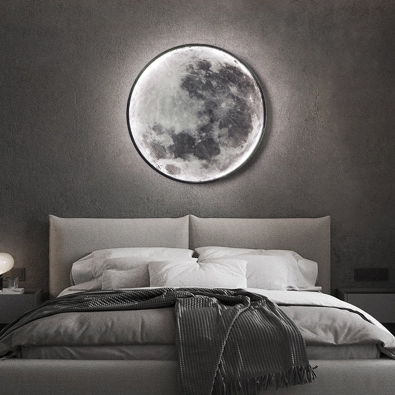 Contemporary Creative Round Moon Aluminum Acrylic LED Wall Sconce Lamp For Living Room