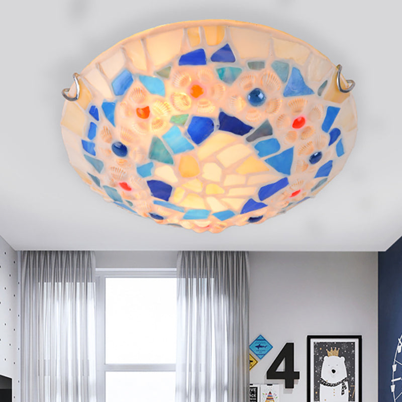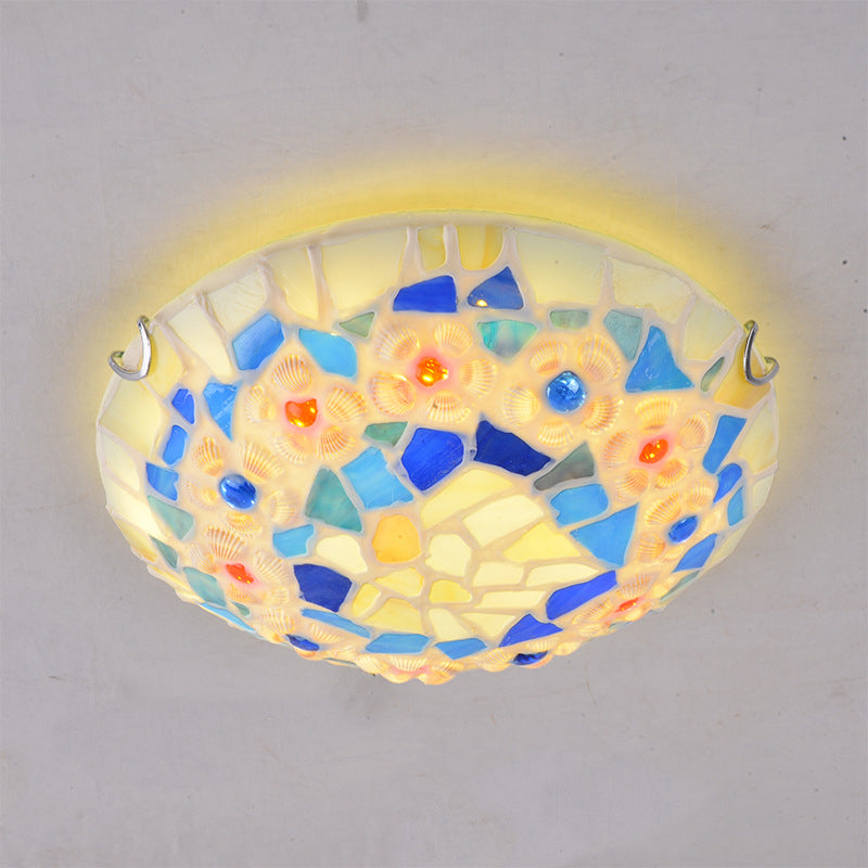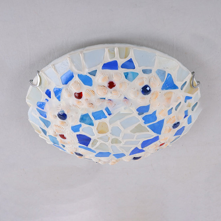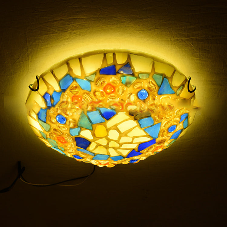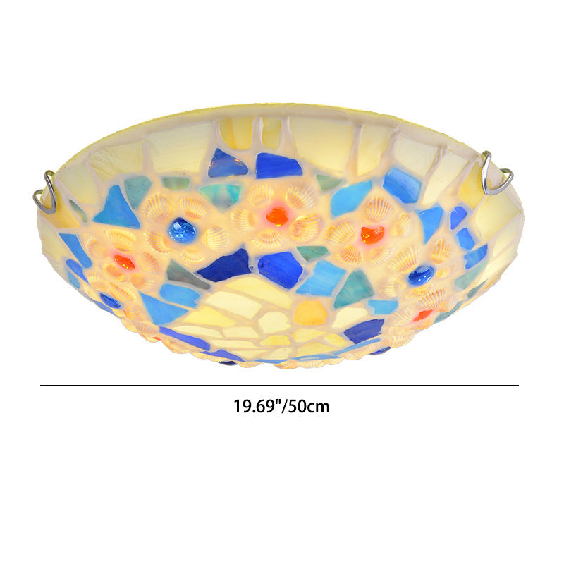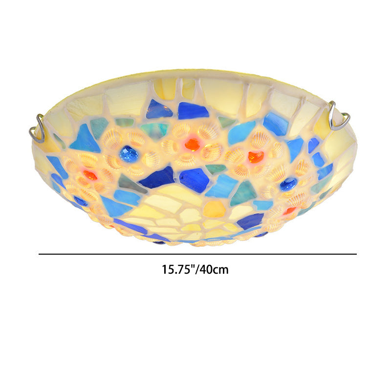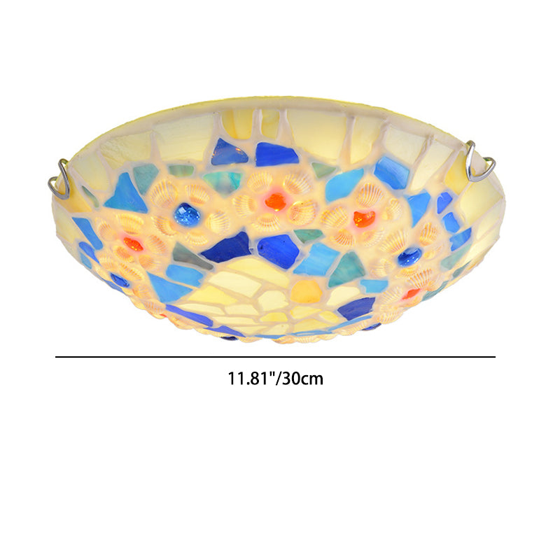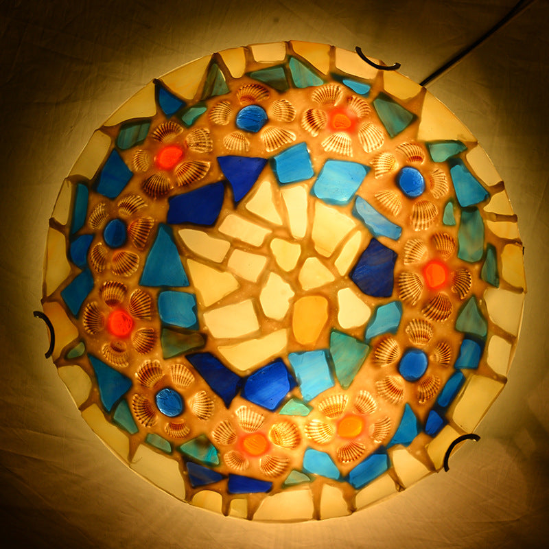 Contemporary Creative Round Shell Stained Glass 2/3/4 Light Flush Mount Ceiling Light For Living Room