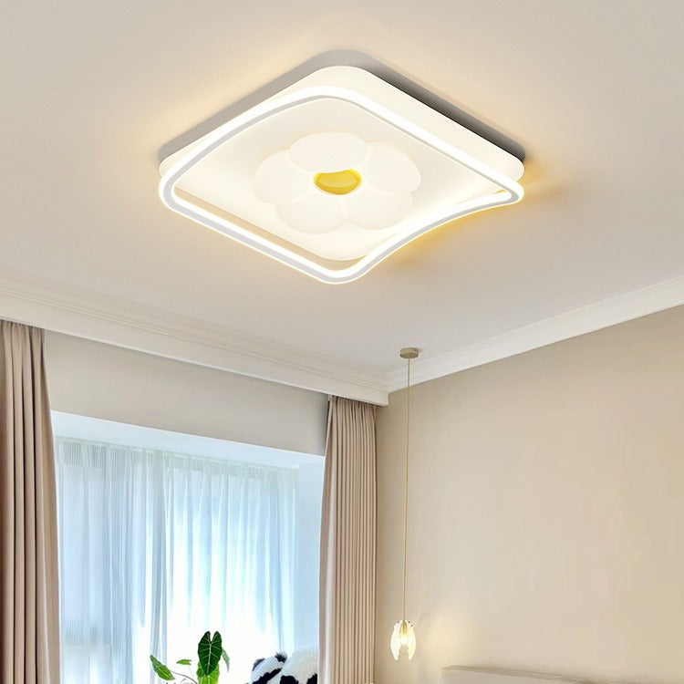 Contemporary Creative Round Square Flower Wave Aluminum PE Plastic Shade LED Flush Mount Ceiling Light For Bedroom