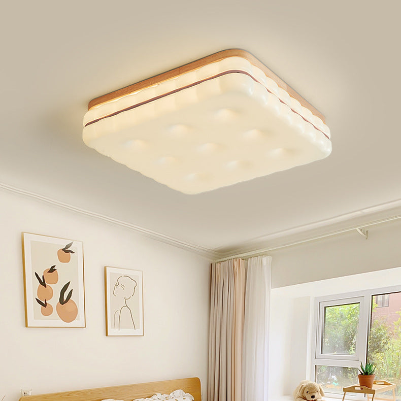 Contemporary Creative Round Square Rectangle Cookie Rubberwood Acrylic LED Flush Mount Ceiling Light For Living Room