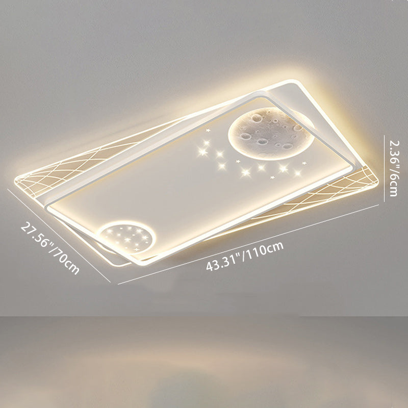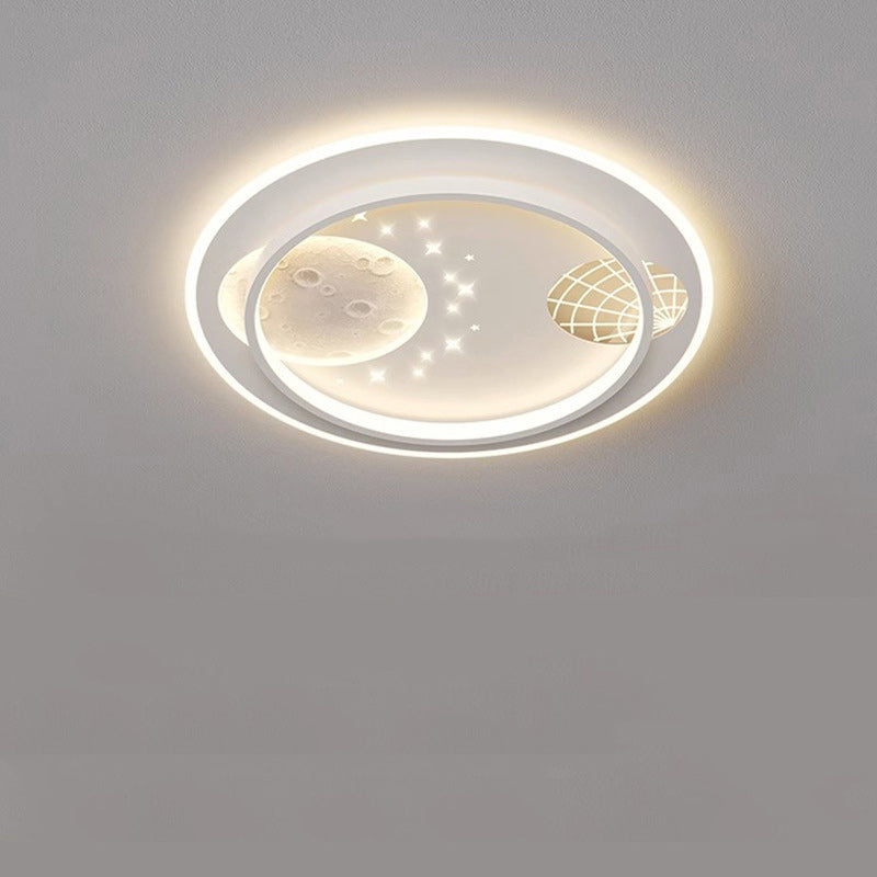 Contemporary Creative Round Square Rectangular Space Moon Iron Aluminum Silicone Acrylic Resin LED Flush Mount Ceiling Light For Bedroom