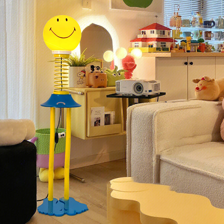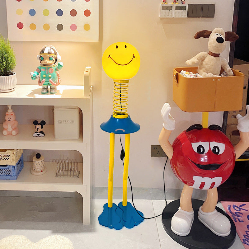 Contemporary Creative Smiley Spring Hardware PVC 1-Light Standing Floor Lamp For Living Room
