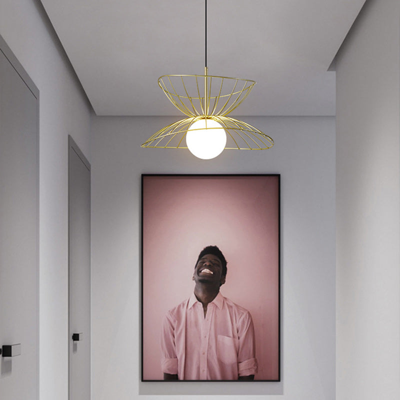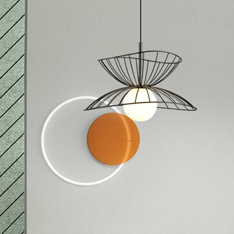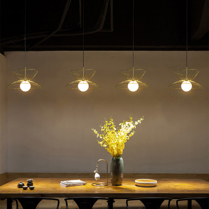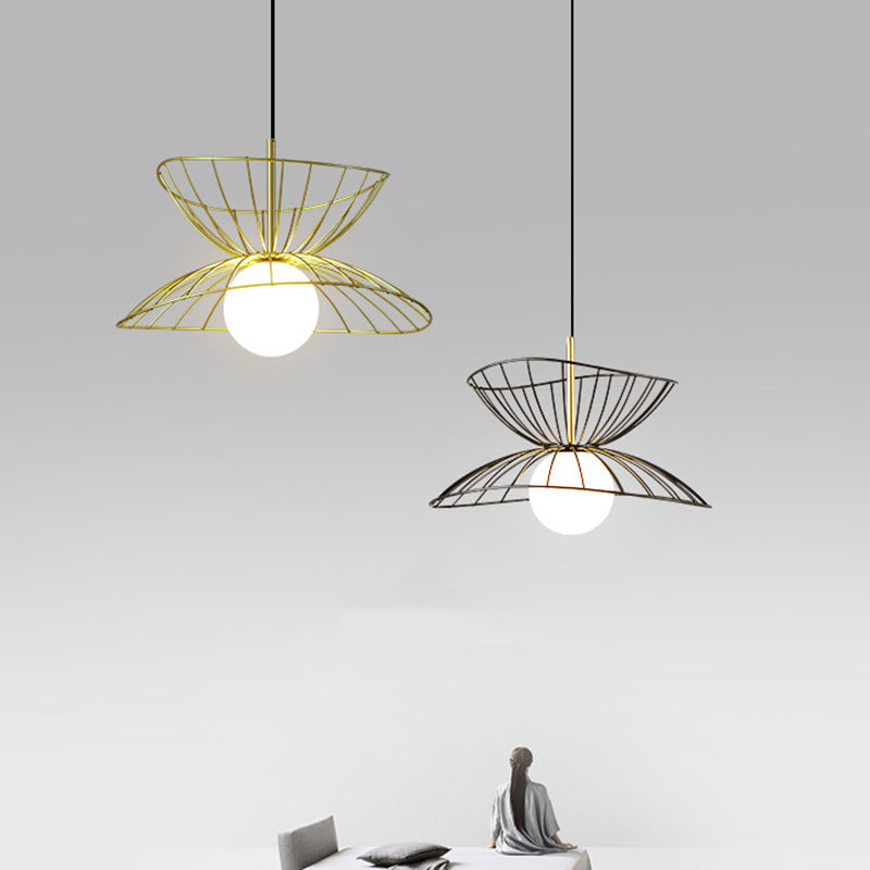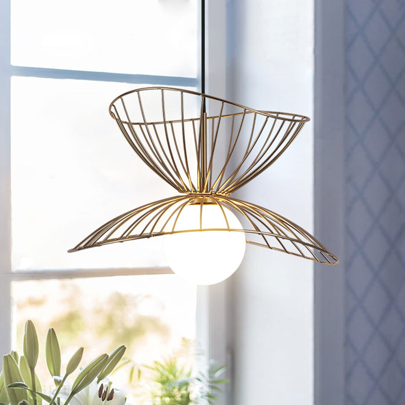 Contemporary Creative Straw Hat Iron 1-Light Pendant Light For Living Room