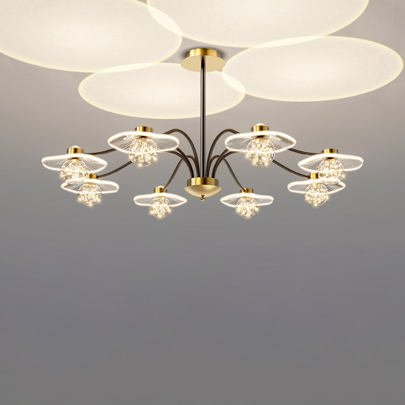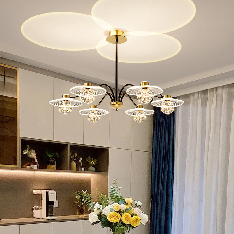 Contemporary Creative Sunset Projection Hardware Lotus Leaf Acrylic LED Chandelier For Living Room