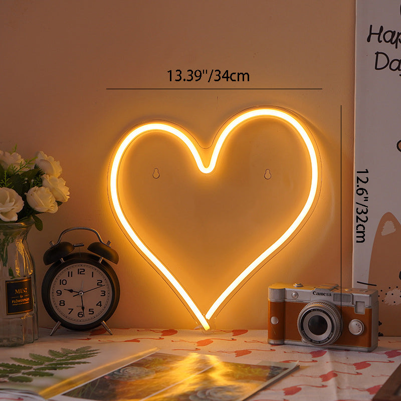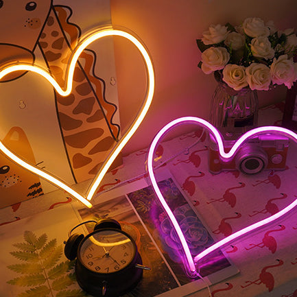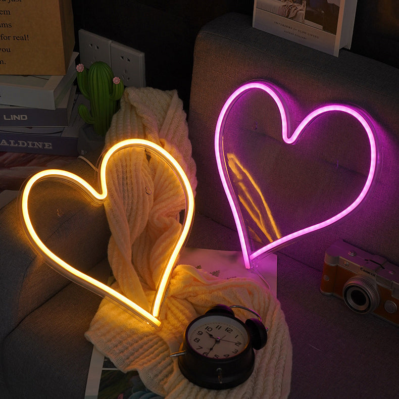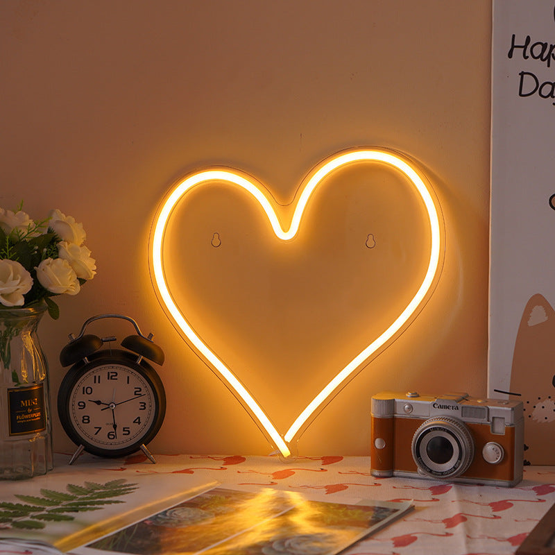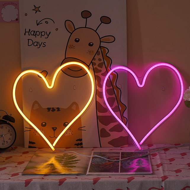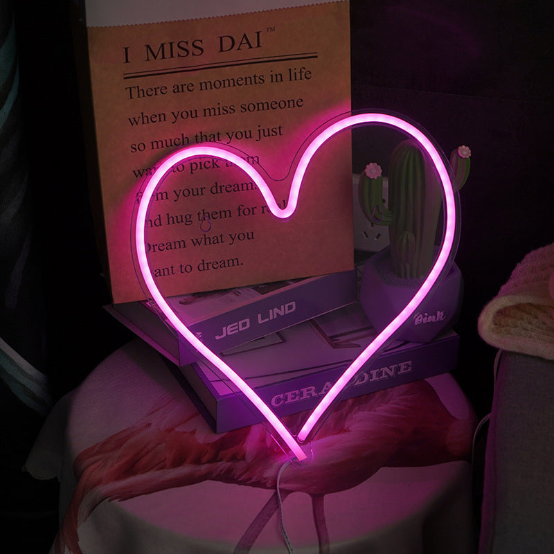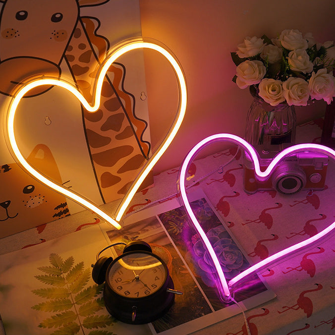 Contemporary Creative Waterproof Acrylic Heart Love Neon Light USB LED Table Lamp For Bedroom