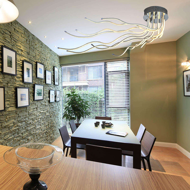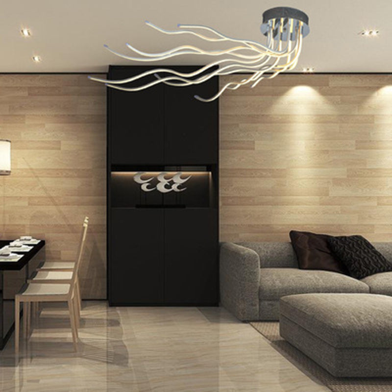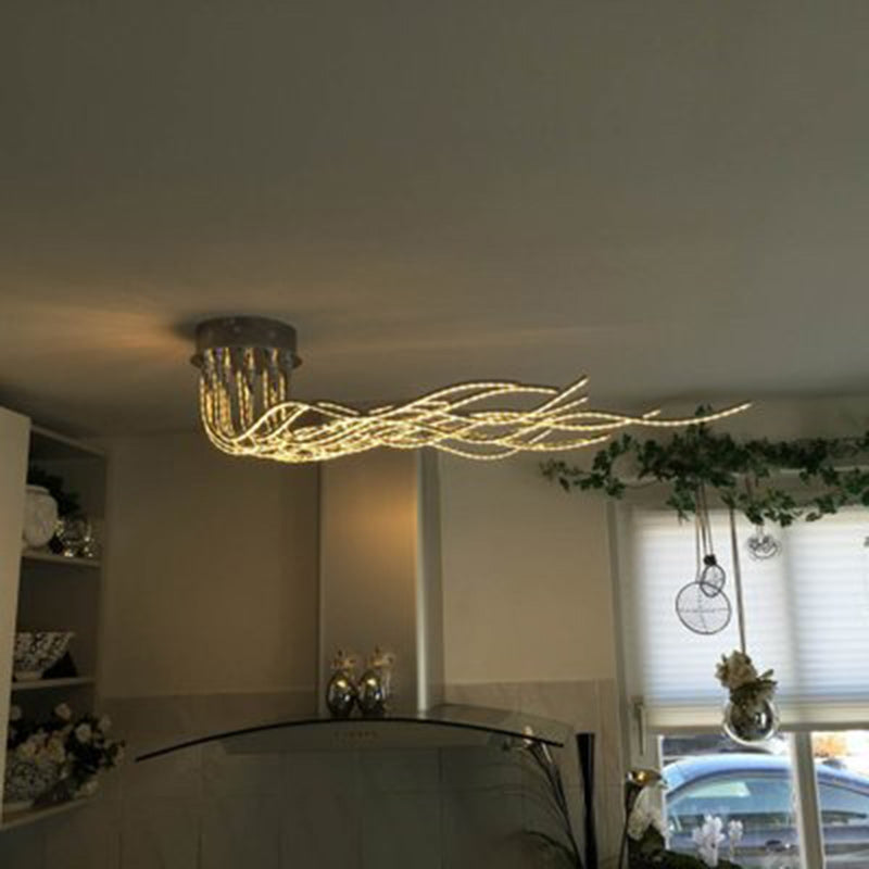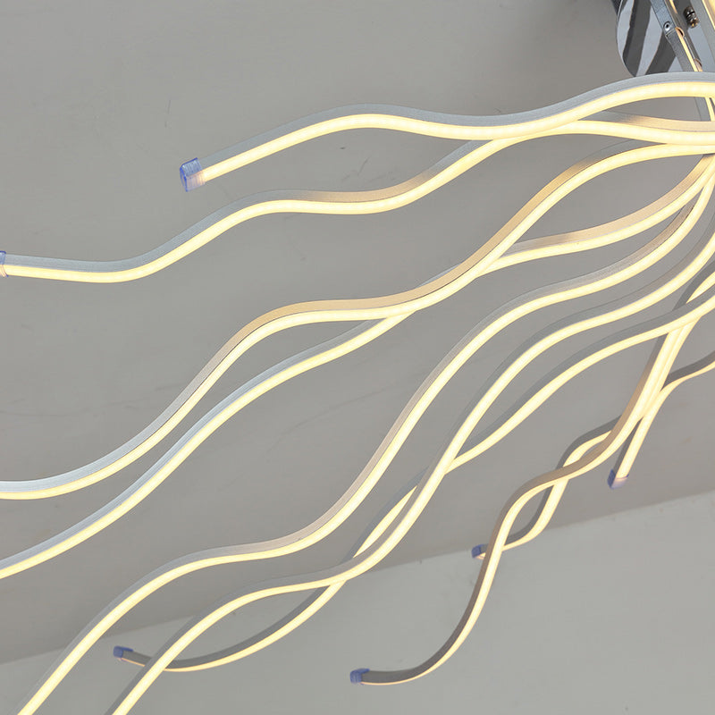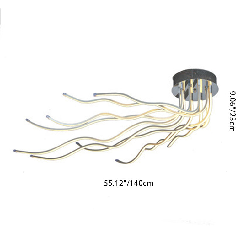 Contemporary Creative Wave Long Aluminum Acrylic LED Semi-Flush Mount Ceiling Light For Living Room