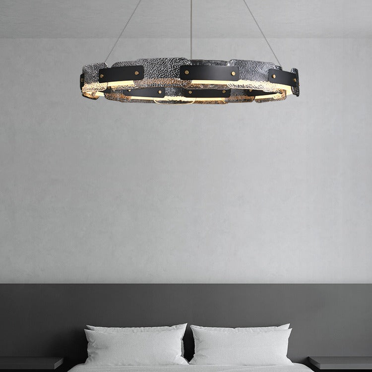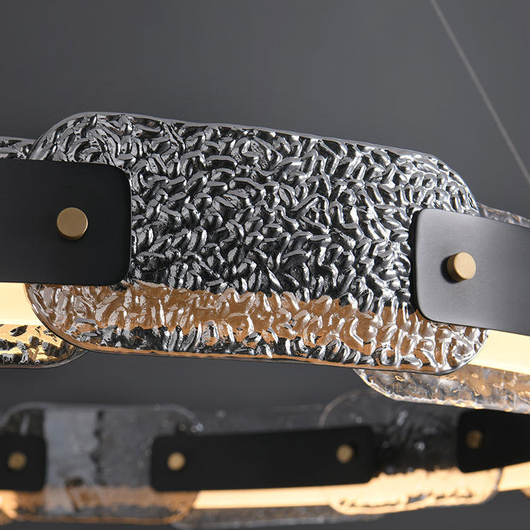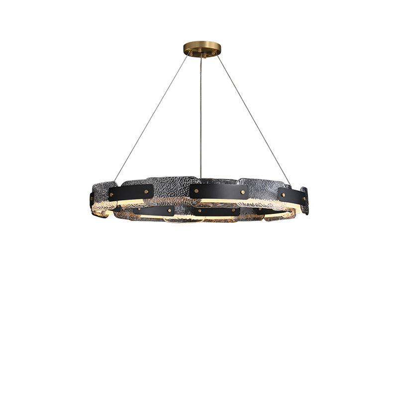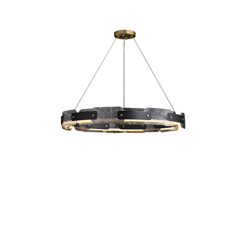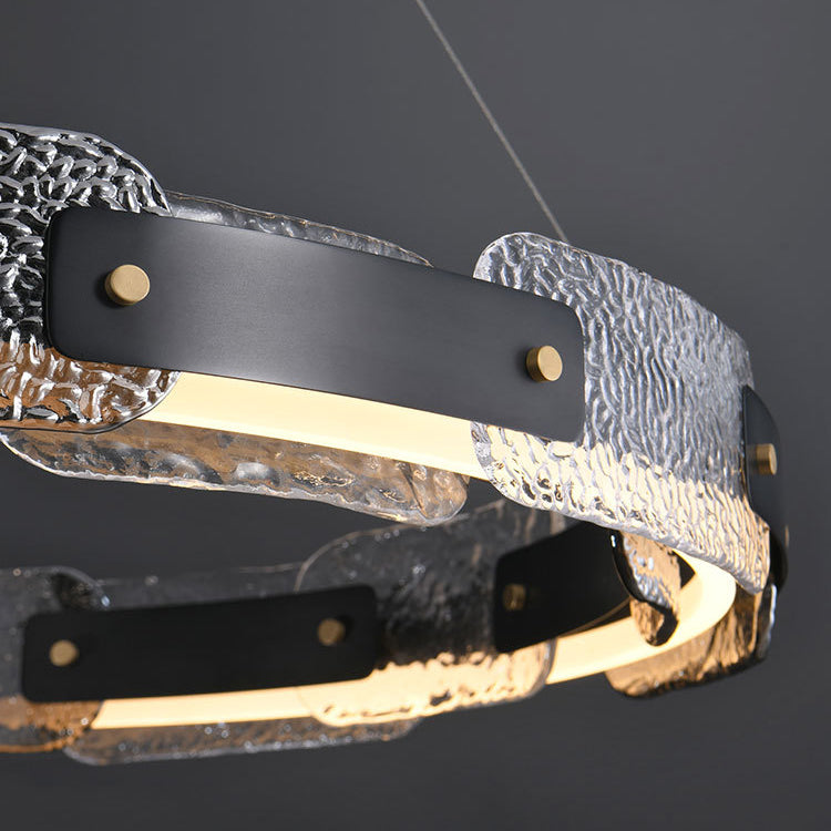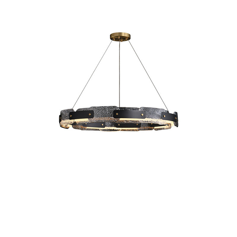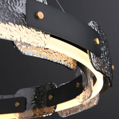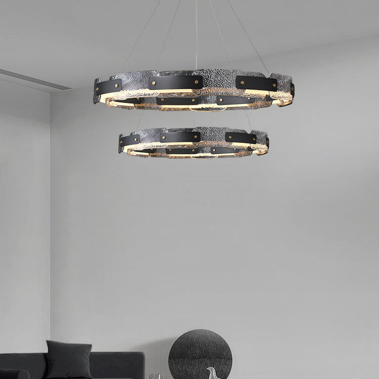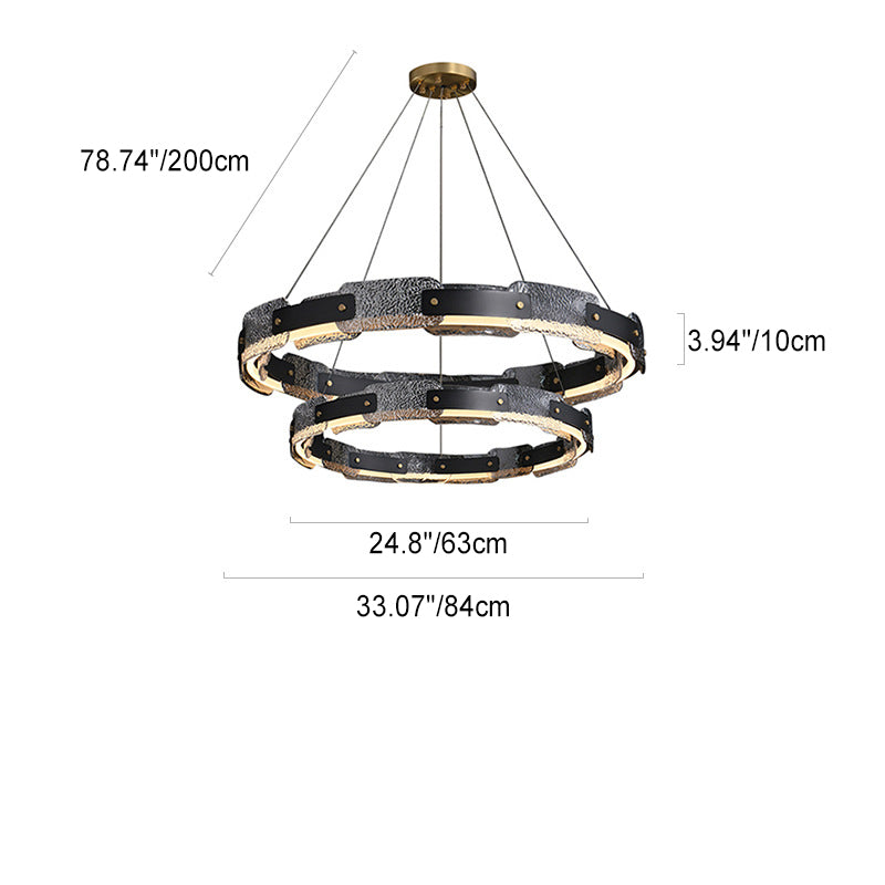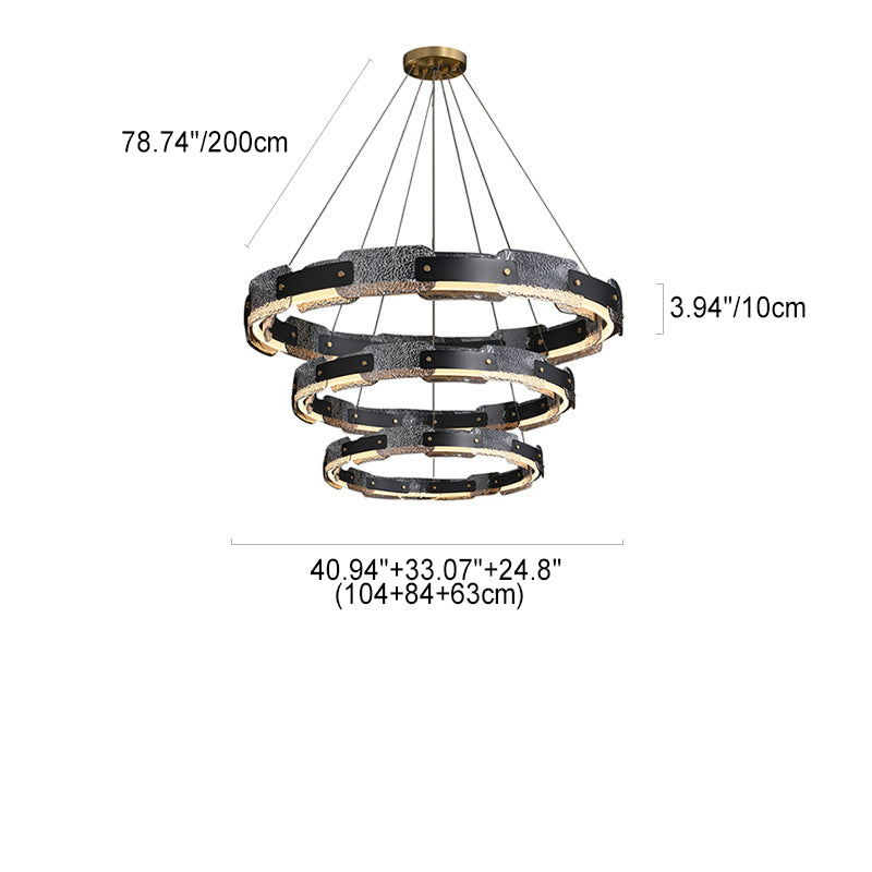 Contemporary Industrial Dazzle Circles Tier Aluminum Copper Glass LED Chandelier For Living Room