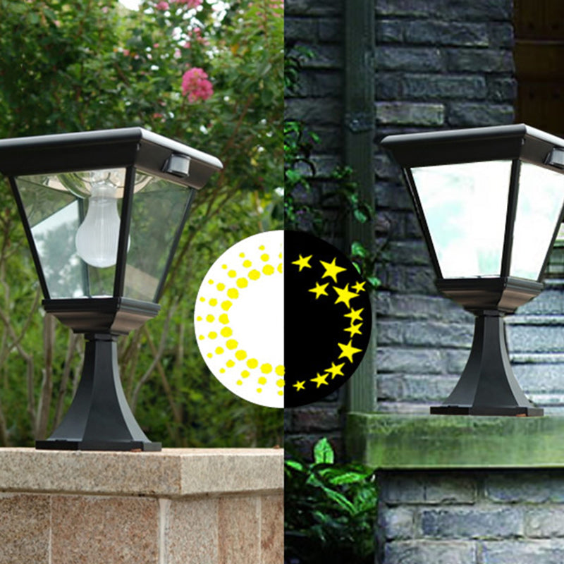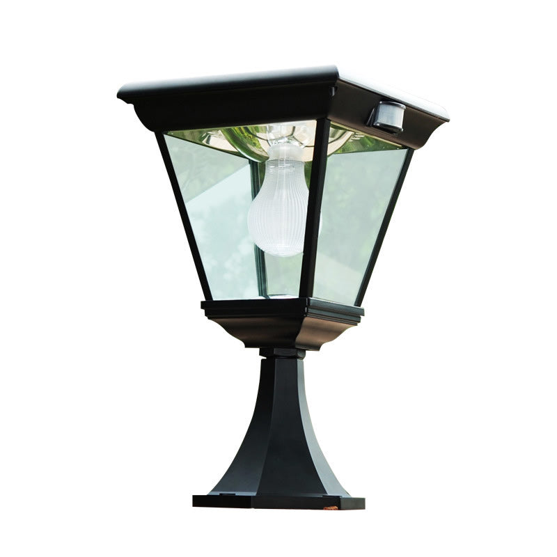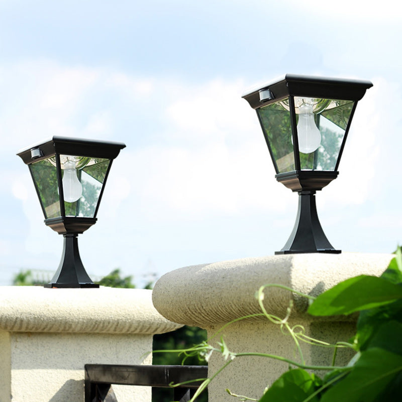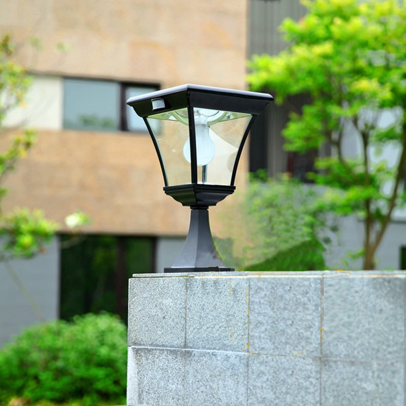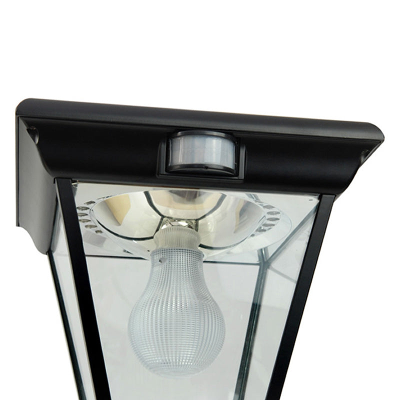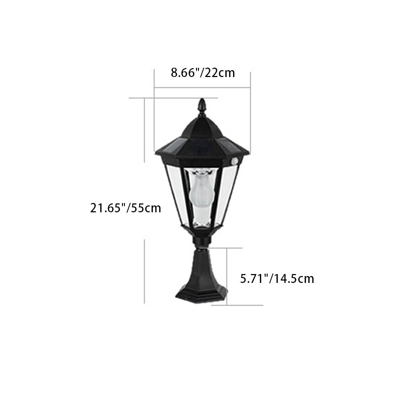 Contemporary Industrial Hexagonal Aluminum Glass Human Sensing LED Solar Outdoor Post Light For Garden