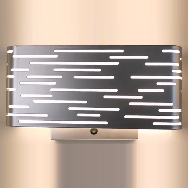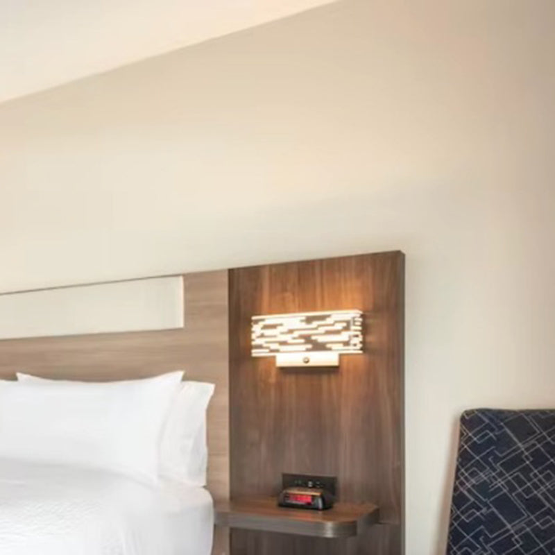 Illuminate your bedroom with this silver bedside wall sconce, featuring a modern rectangular hollow design in iron and acrylic. Available in single or double light options, it adds a sleek industrial touch to hotel rooms or home interiors while offering practical nighttime lighting.