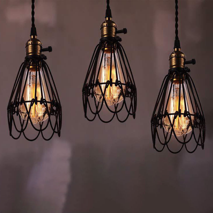 Contemporary Industrial Iron Cage Flower 1-Light Pendant Light For Dining Room