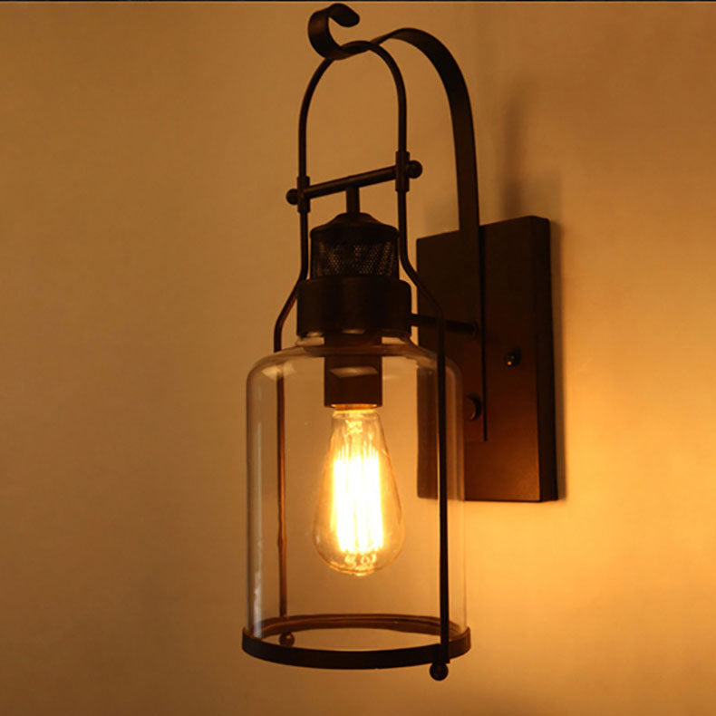 Contemporary Industrial Iron Glass Cylinder 1-Light Wall Sconce Lamp For Hallway