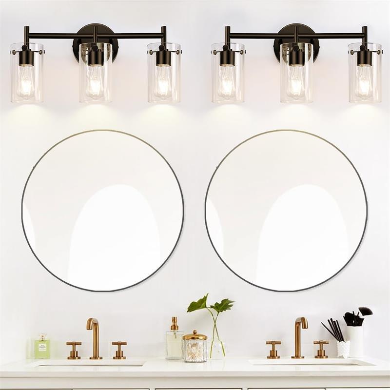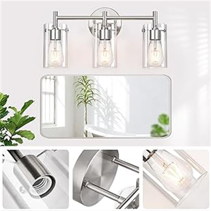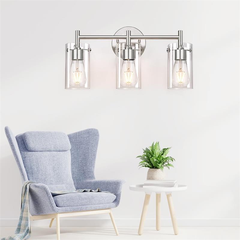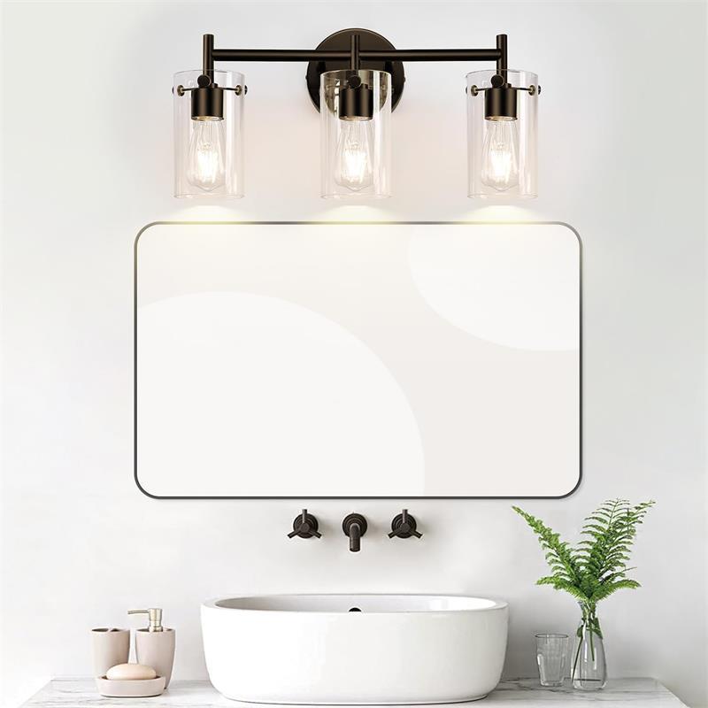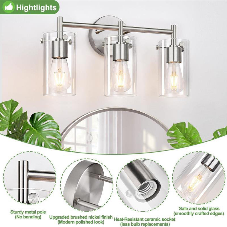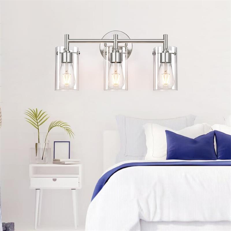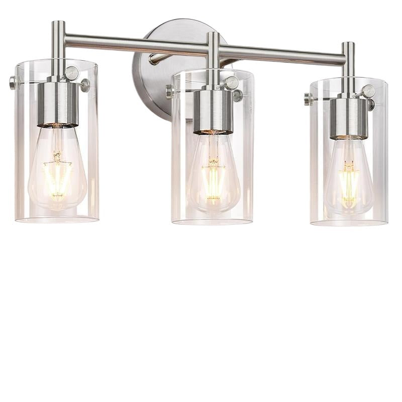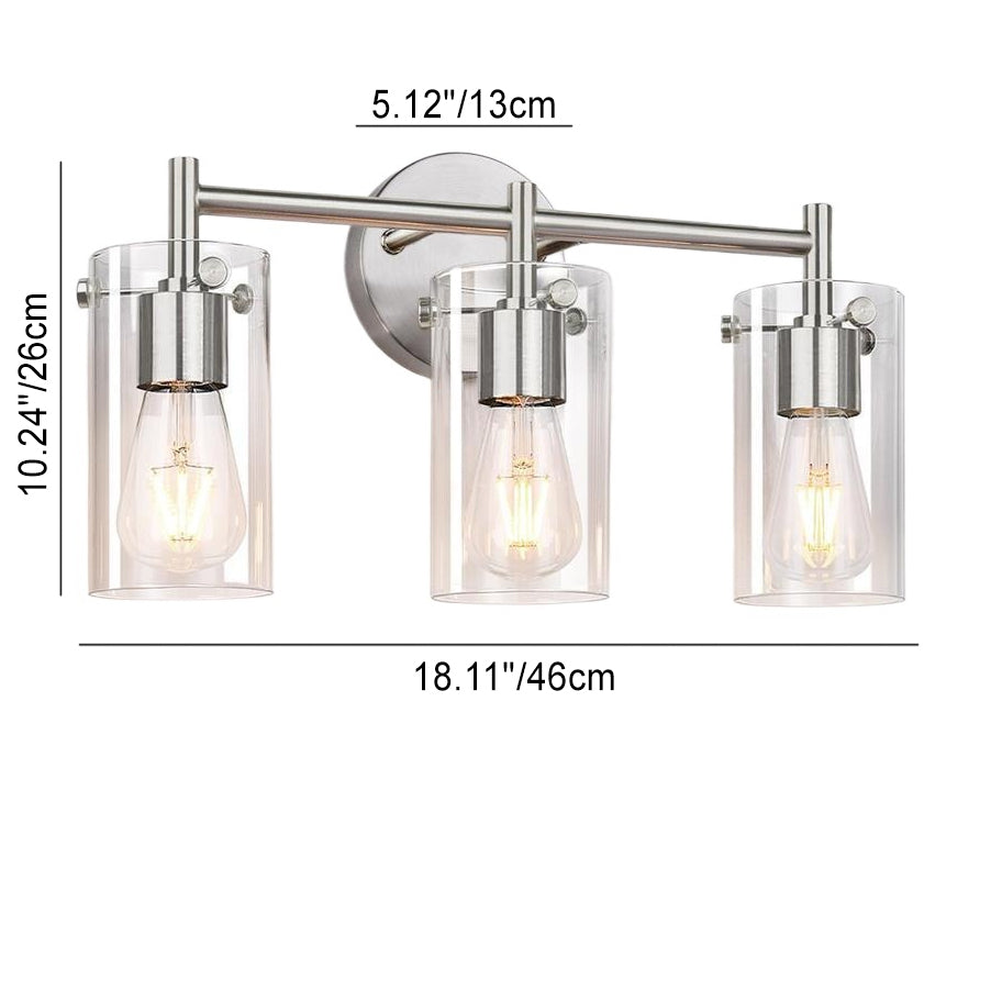 Contemporary Industrial Metal Glass Cylinder 3-Light Wall Sconce Lamp Vanity Light For Bathroom