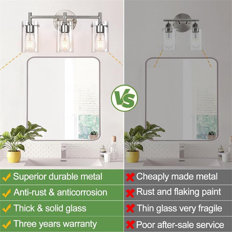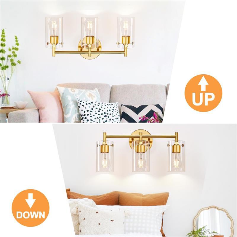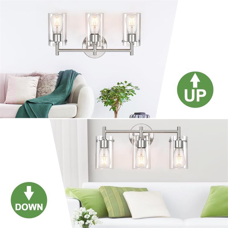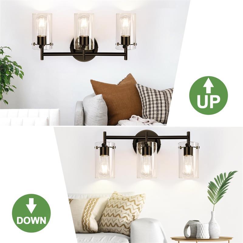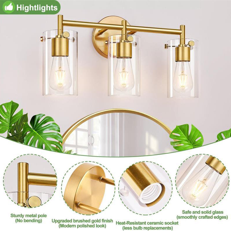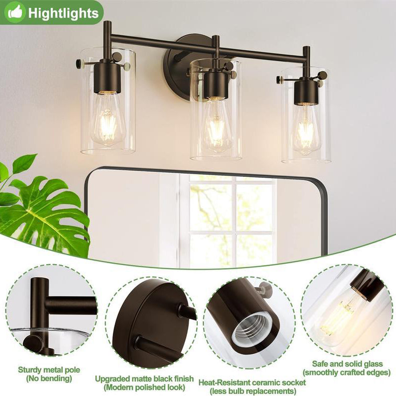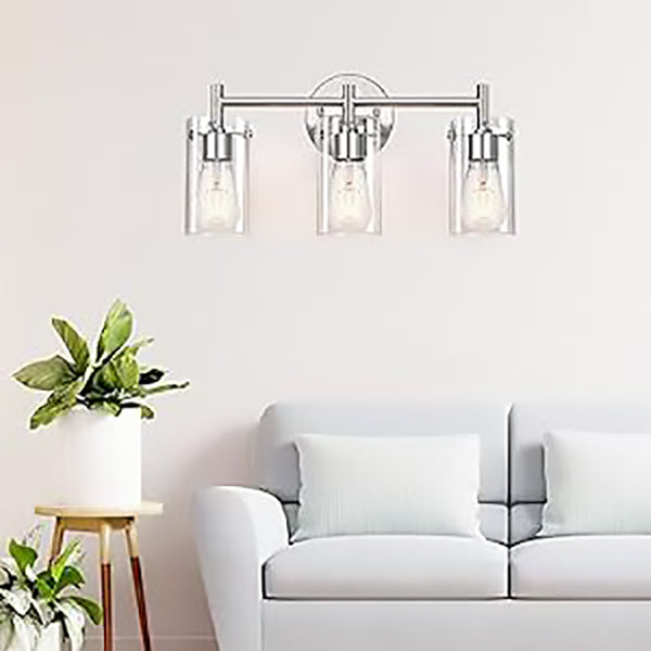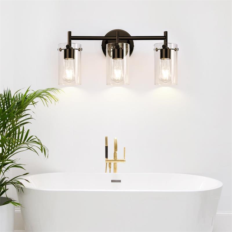 Contemporary Industrial Metal Glass Cylinder 3-Light Wall Sconce Lamp Vanity Light For Bathroom
