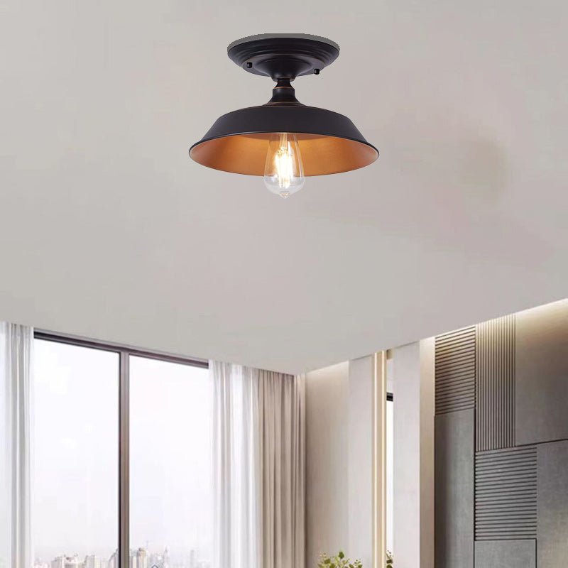 Contemporary Industrial Oil Rubbed Bronze Finish Iron 1-Light Semi-Flush Mount Ceiling Light For Dining Room