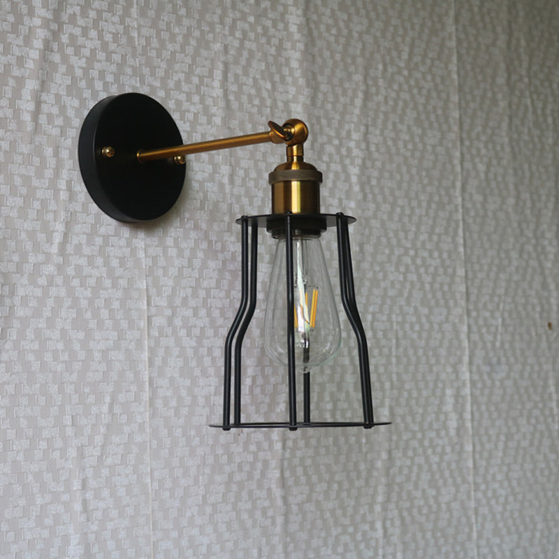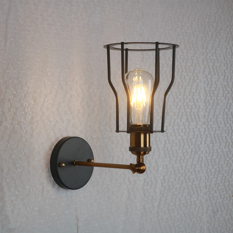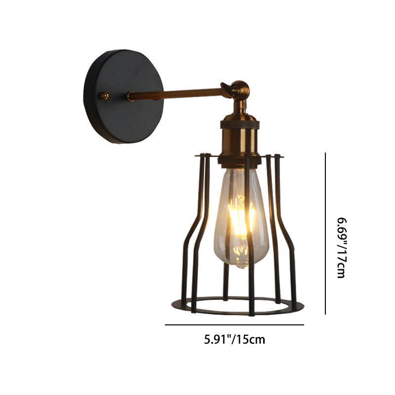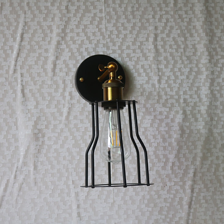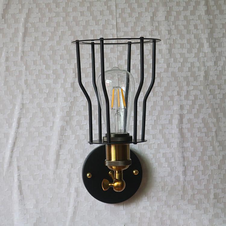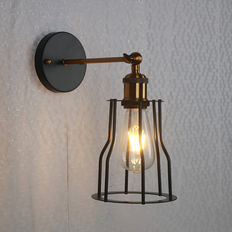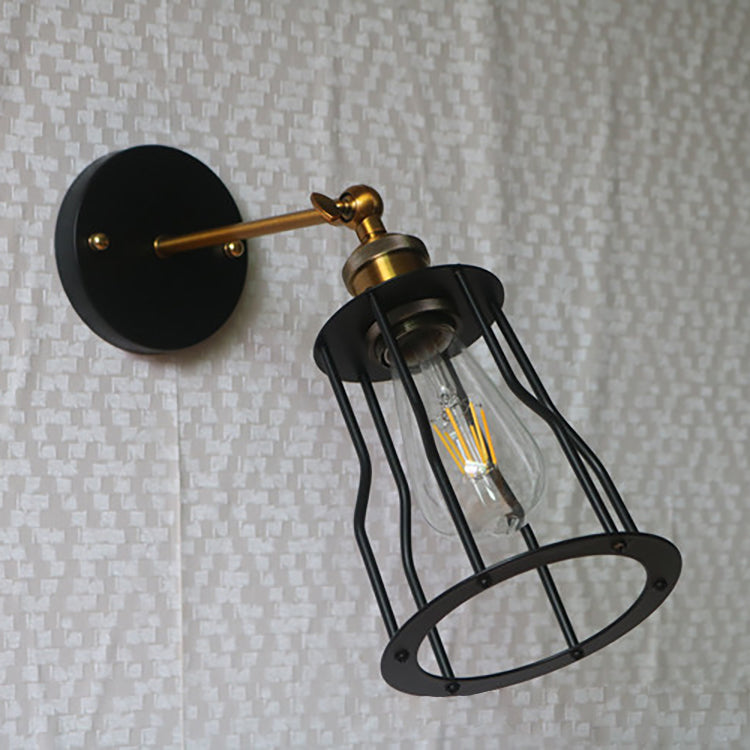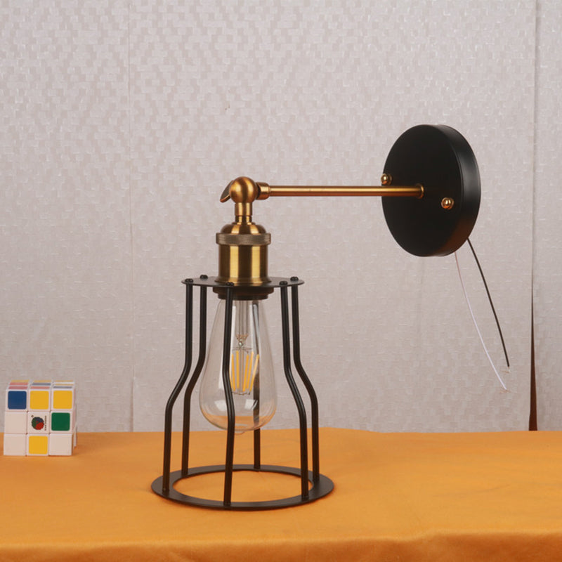 Contemporary Industrial Round Iron Cage 1-Light Wall Sconce Lamp For Living Room