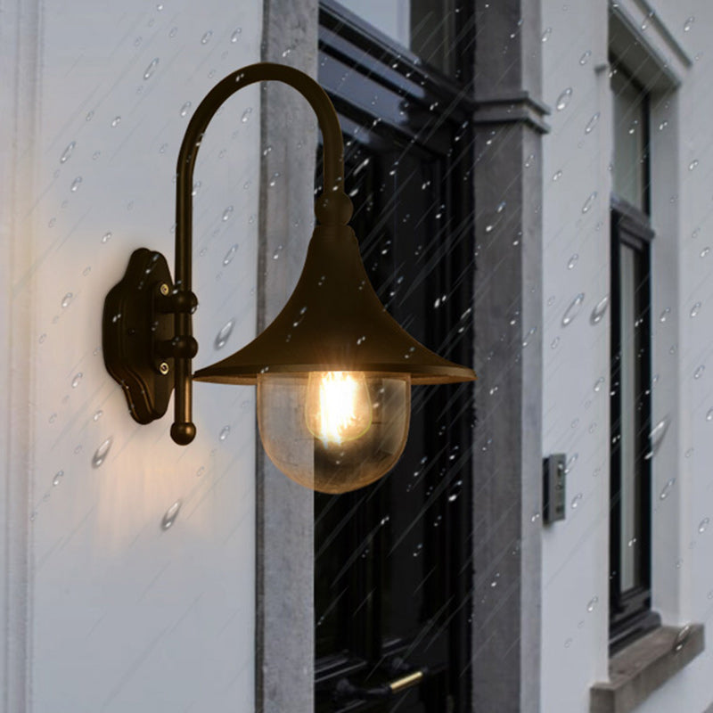 Contemporary Industrial Waterproof Aluminum Acrylic Conic Horn 1-Light Wall Sconce Lamp For Outdoor Patio