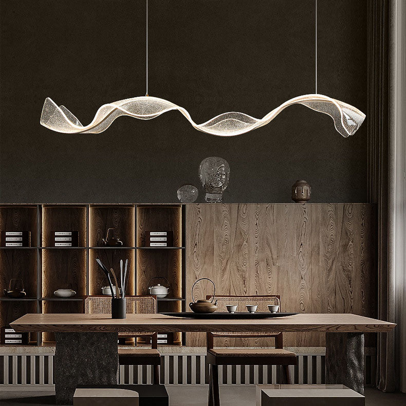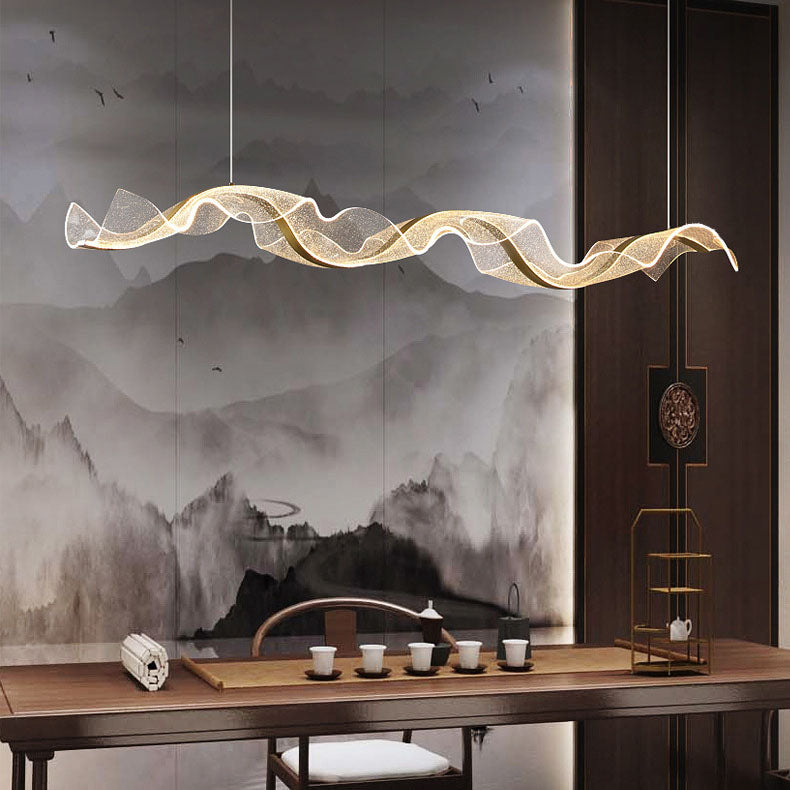 Contemporary Luxury Acrylic Corrugated Fluttering Tape Hardware LED Island Light Pendant Light For Living Room