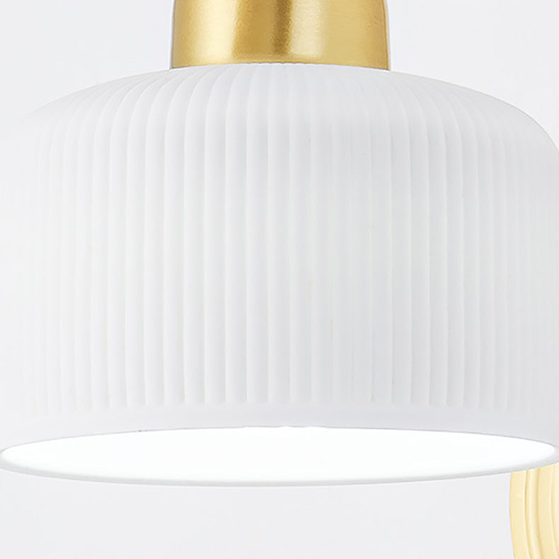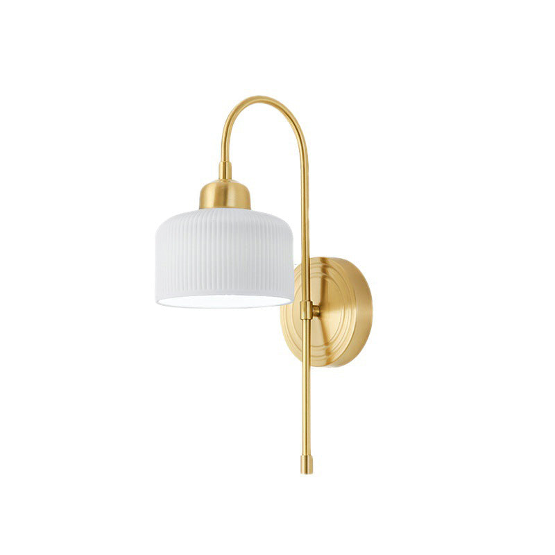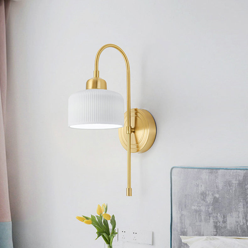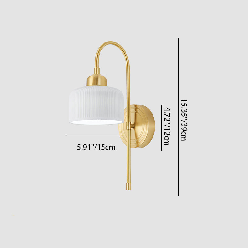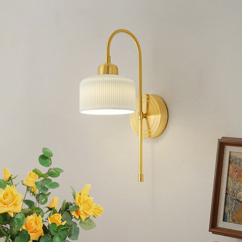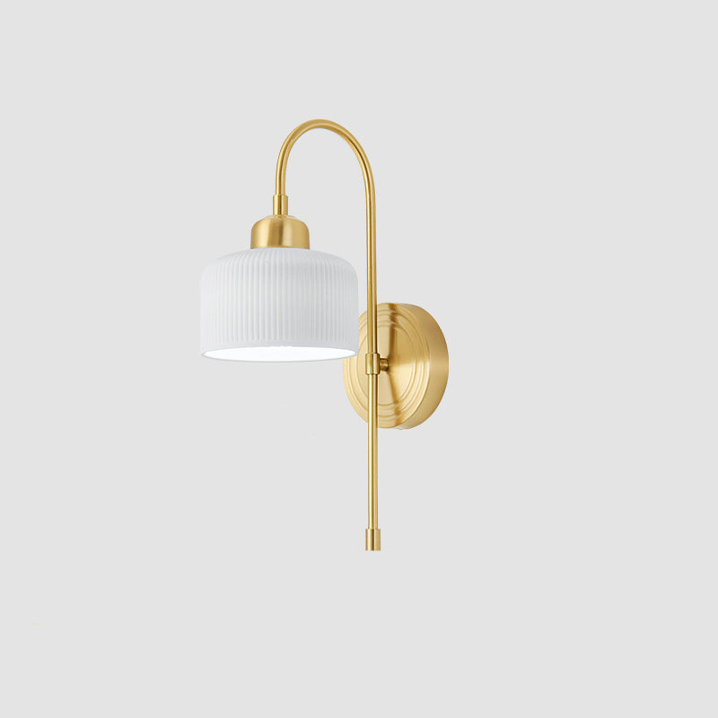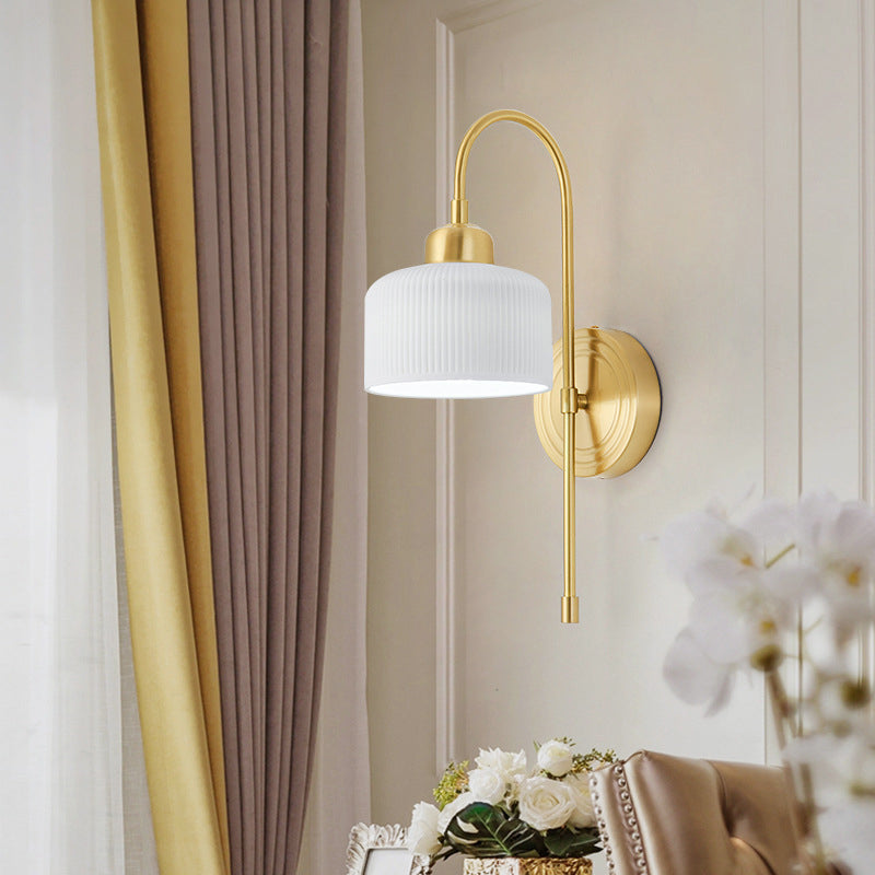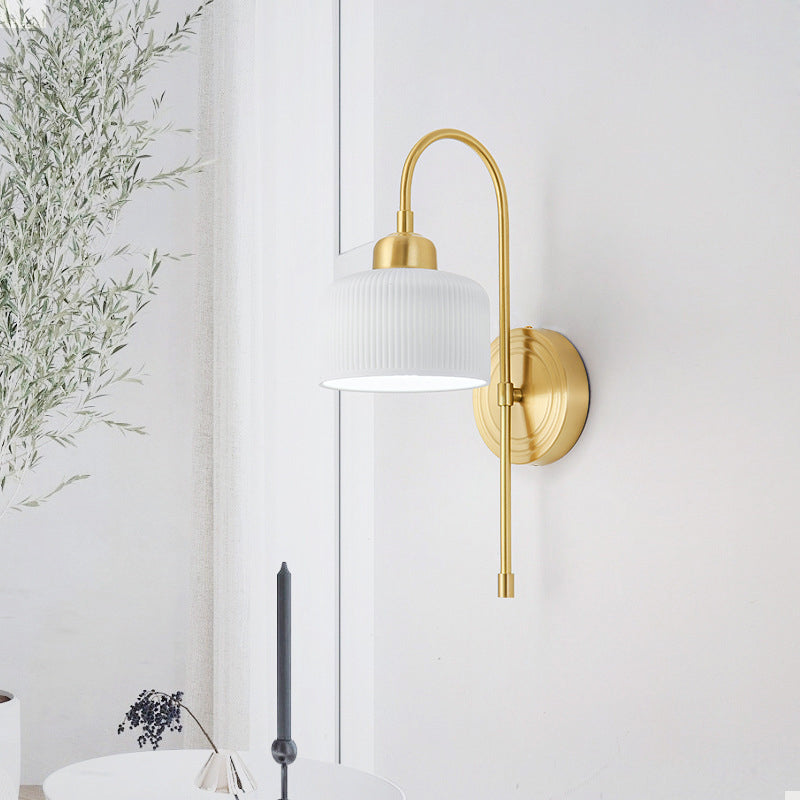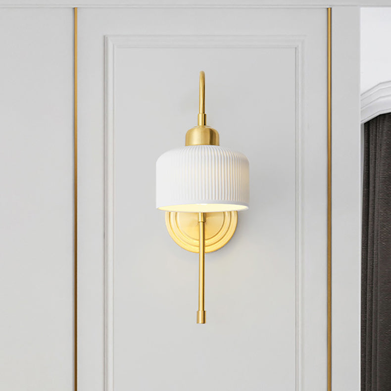 Contemporary Luxury Antique Brass Cylinder Ribbed Ceramic 1-Light Wall Sconce Lamp For Living Room