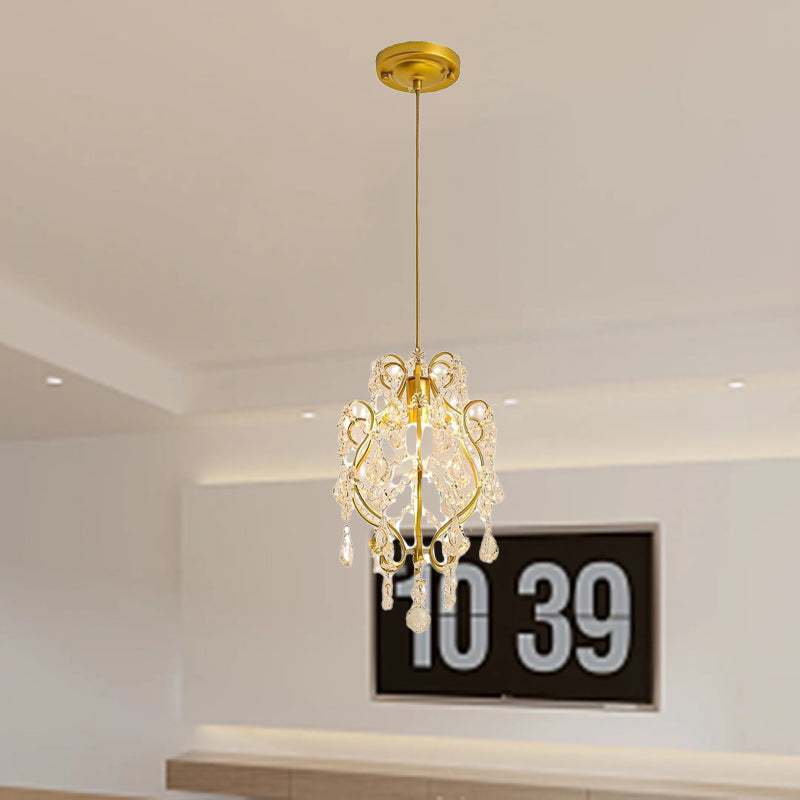 Contemporary Luxury Bent Crystal Draping Iron Glass 1-Light Pendant Light For Living Room