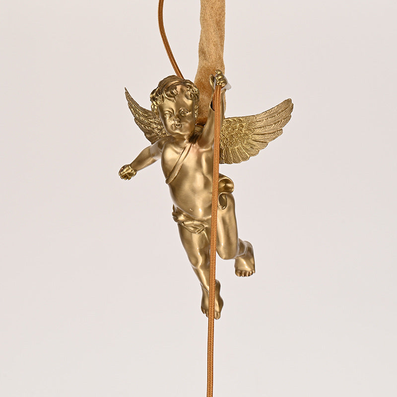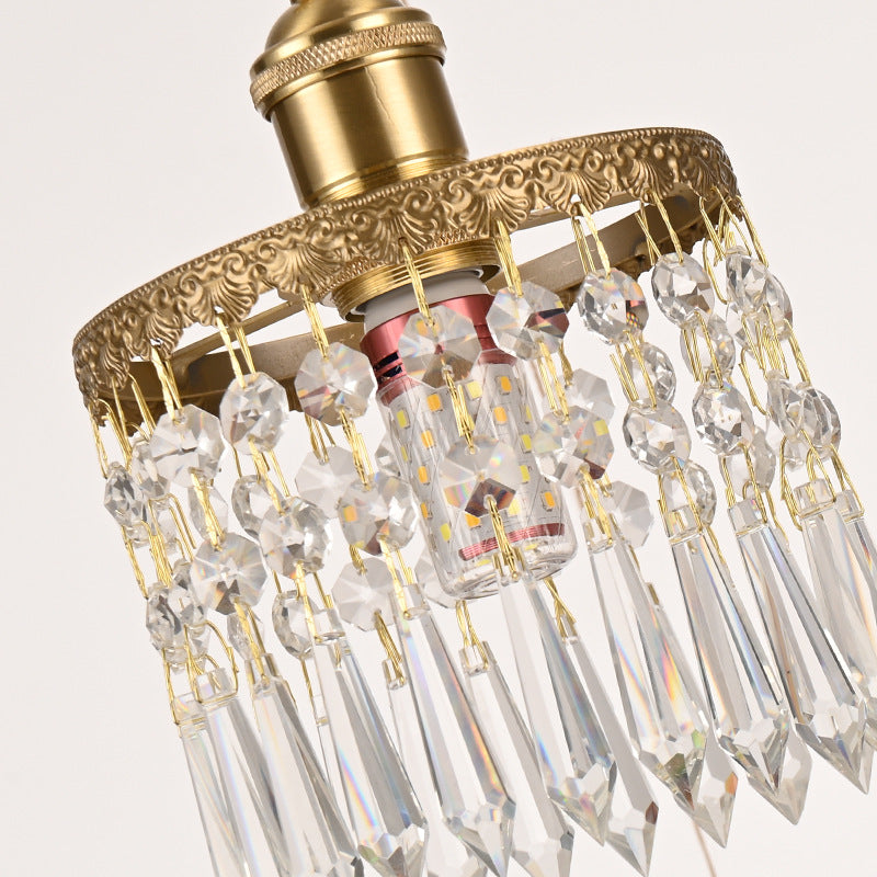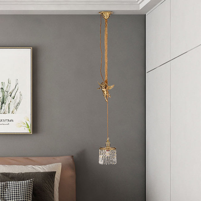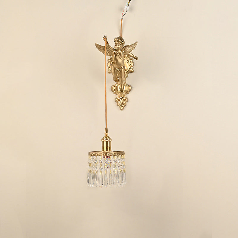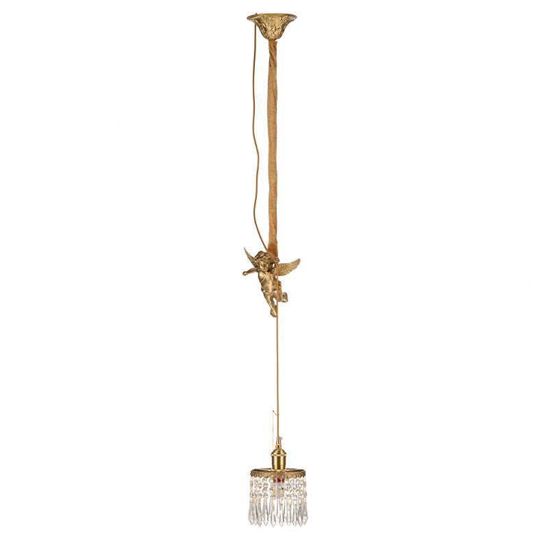 Contemporary Luxury Carved Brass Angel Crystal Round Shade 1-Light Pendant Light For Living Room