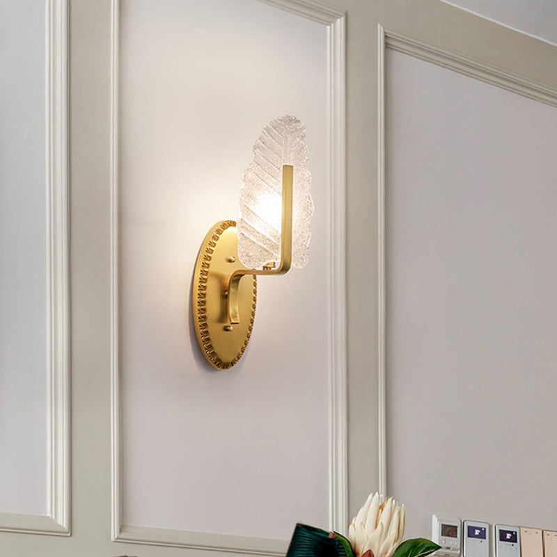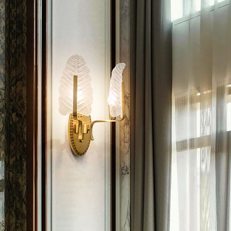 Contemporary Luxury Copper Glass Leave Banana Leaf 1/2 Light Wall Sconce Lamp For Living Room