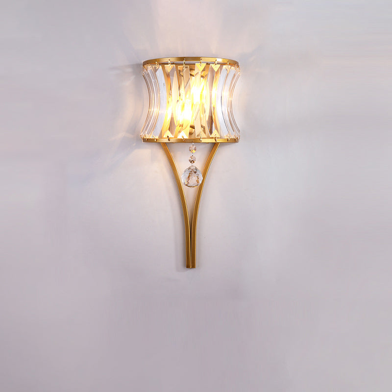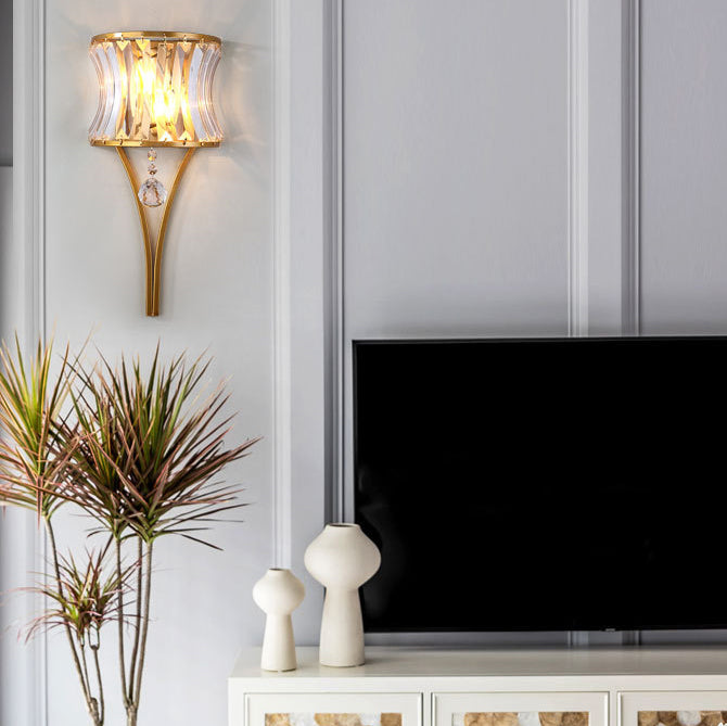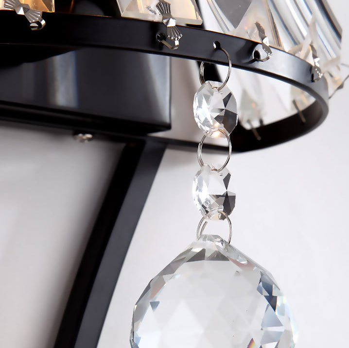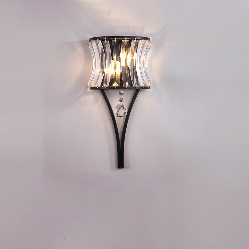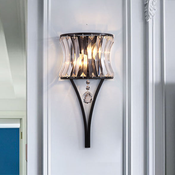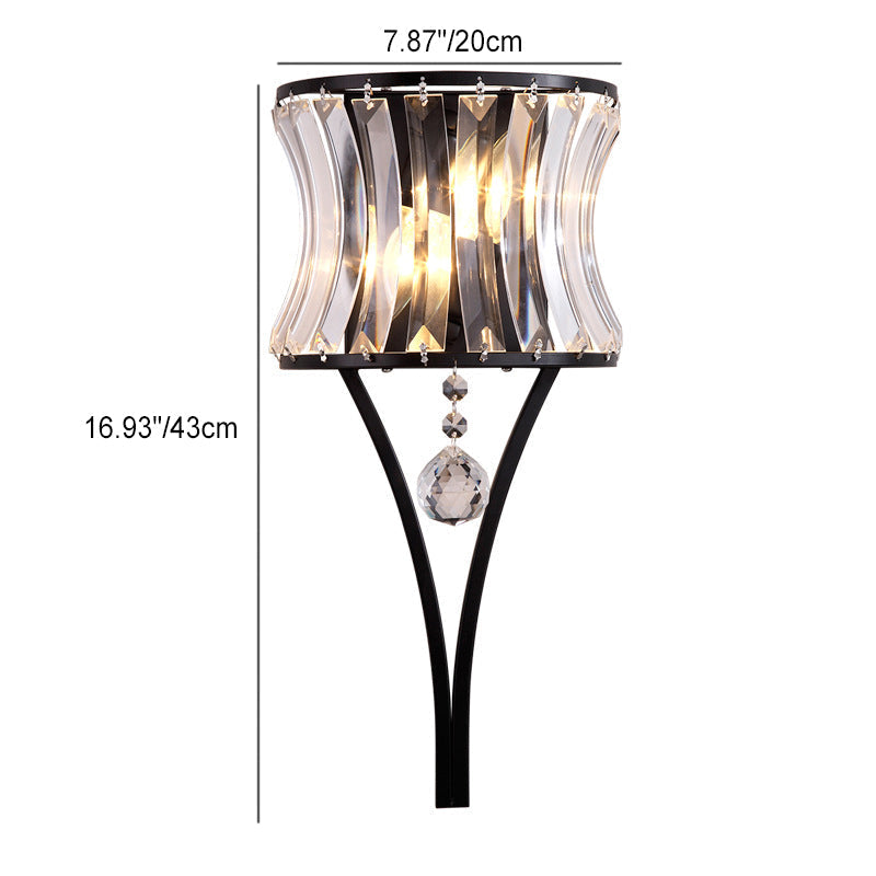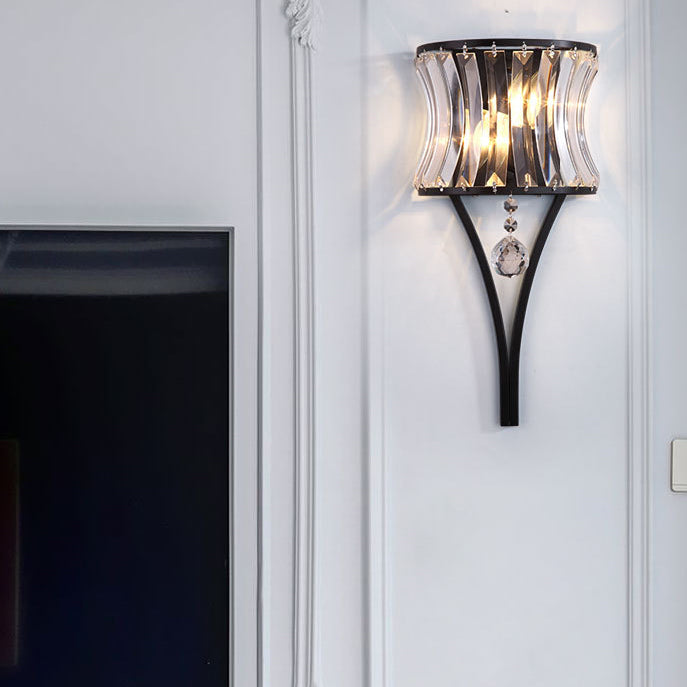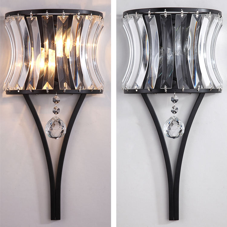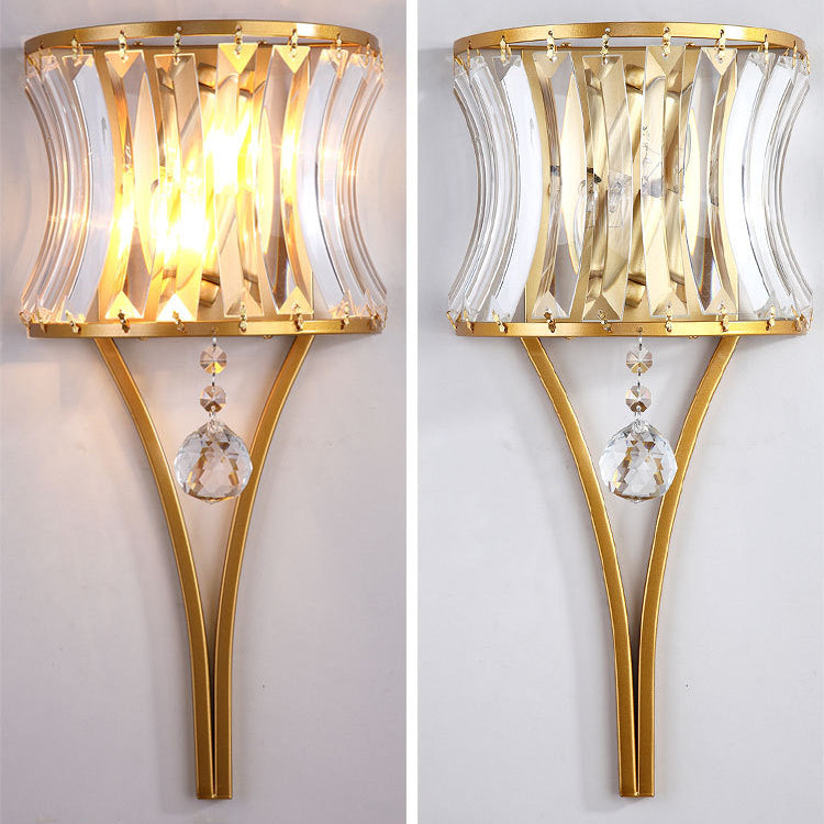 Contemporary Luxury Dazzling Curved Crystal Sheet Shade Hardware 2-Light Wall Sconce Lamp For Living Room