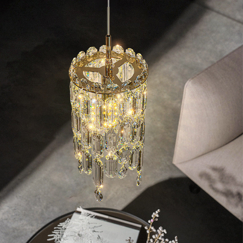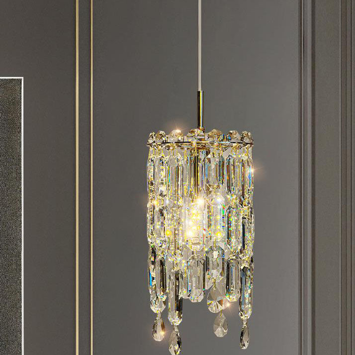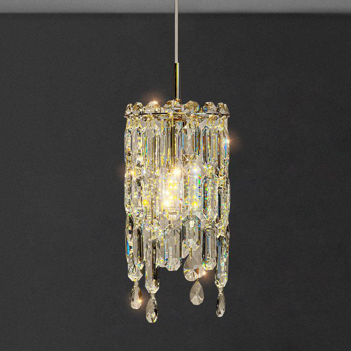 Contemporary Luxury Dazzling Prismatic Clear Crystal 1-Light Pendant Light For Living Room