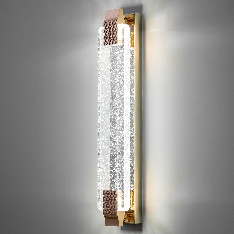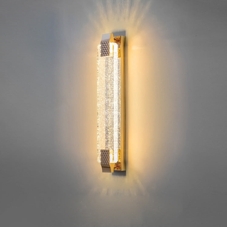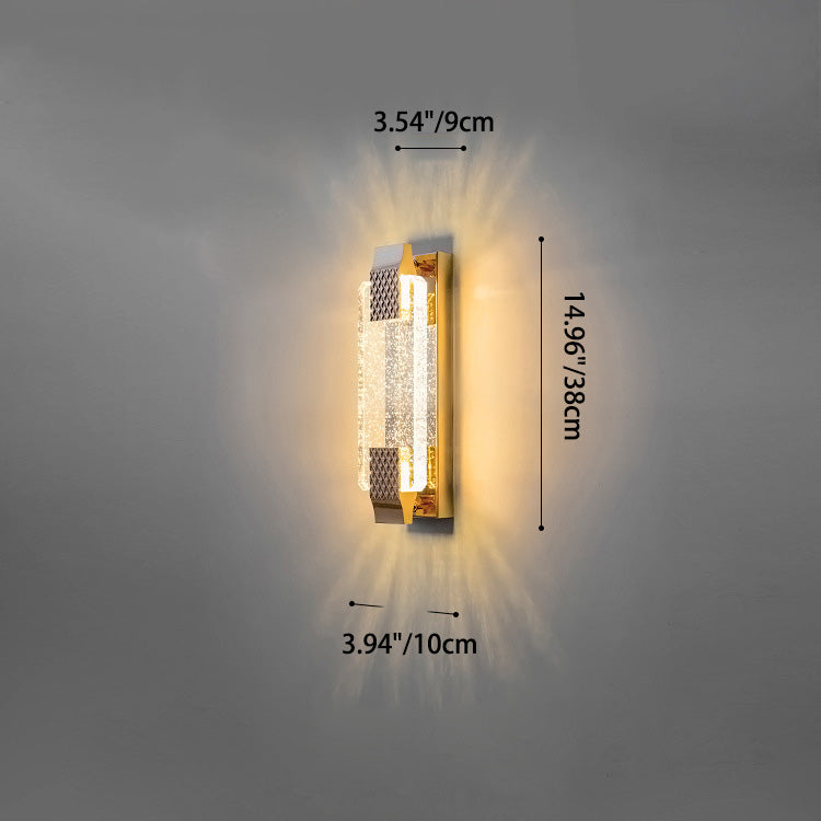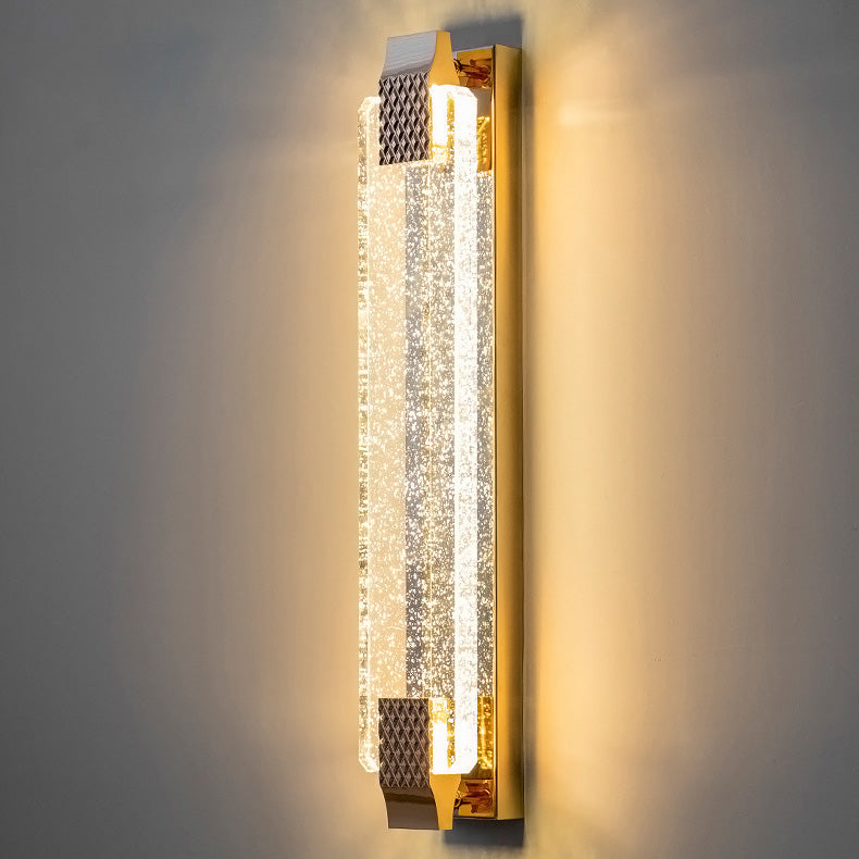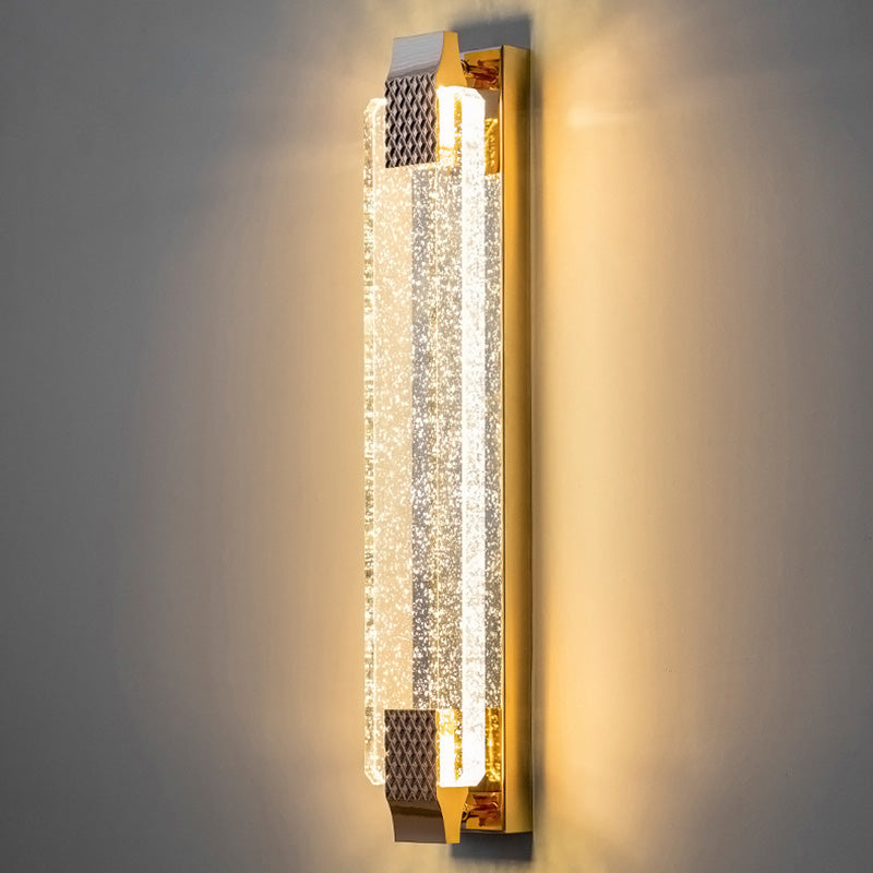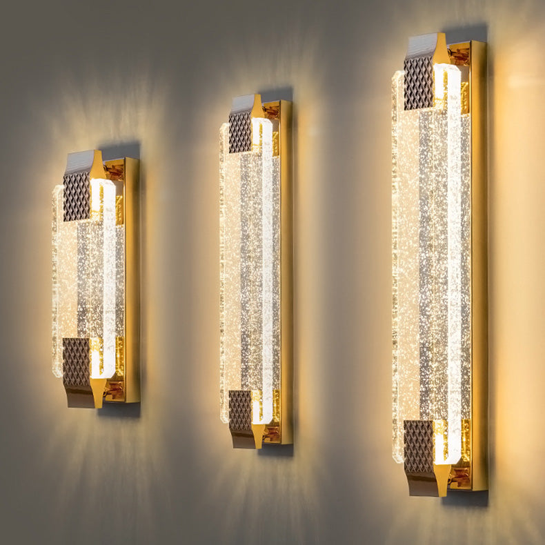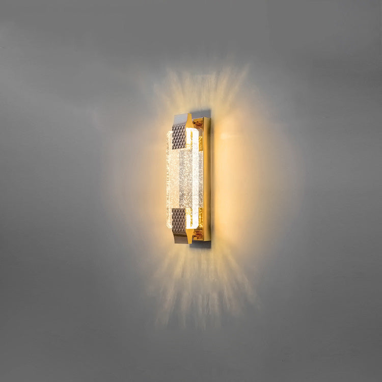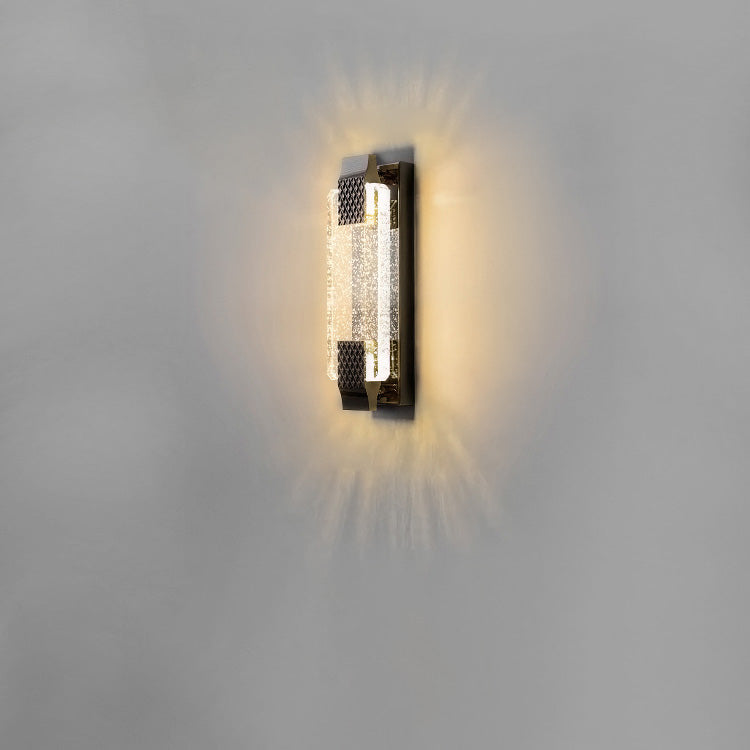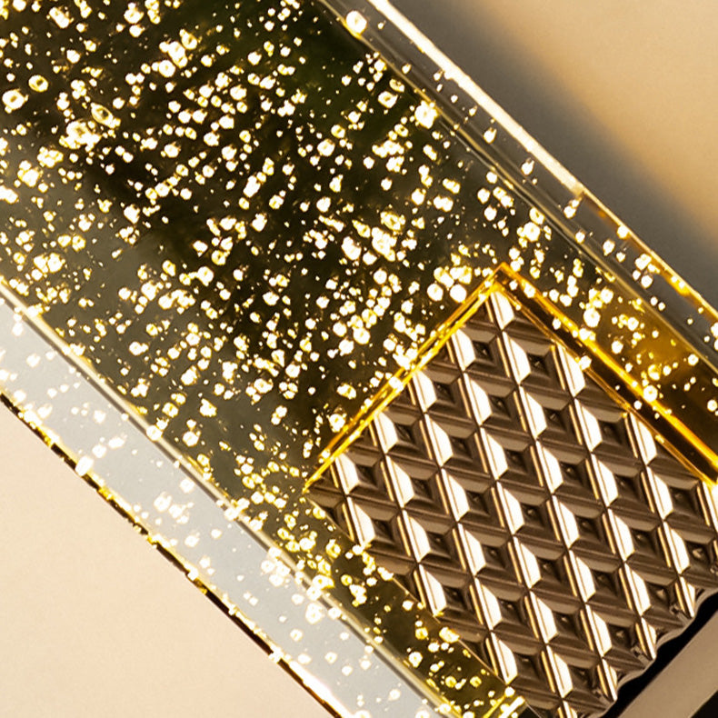 Contemporary Luxury Dazzling Rectangular Bubble Textured Crystal Shade Stainless Steel LED Wall Sconce Lamp For Living Room